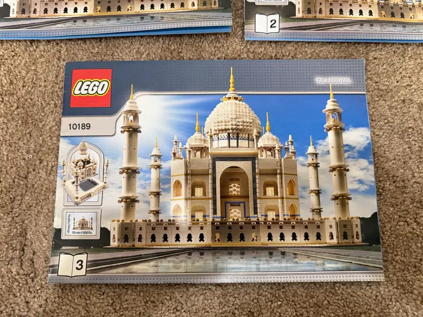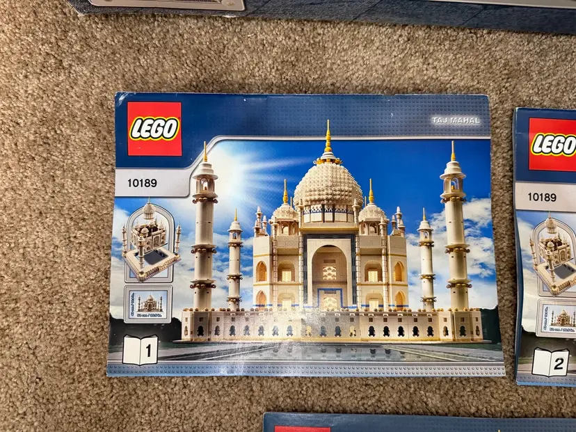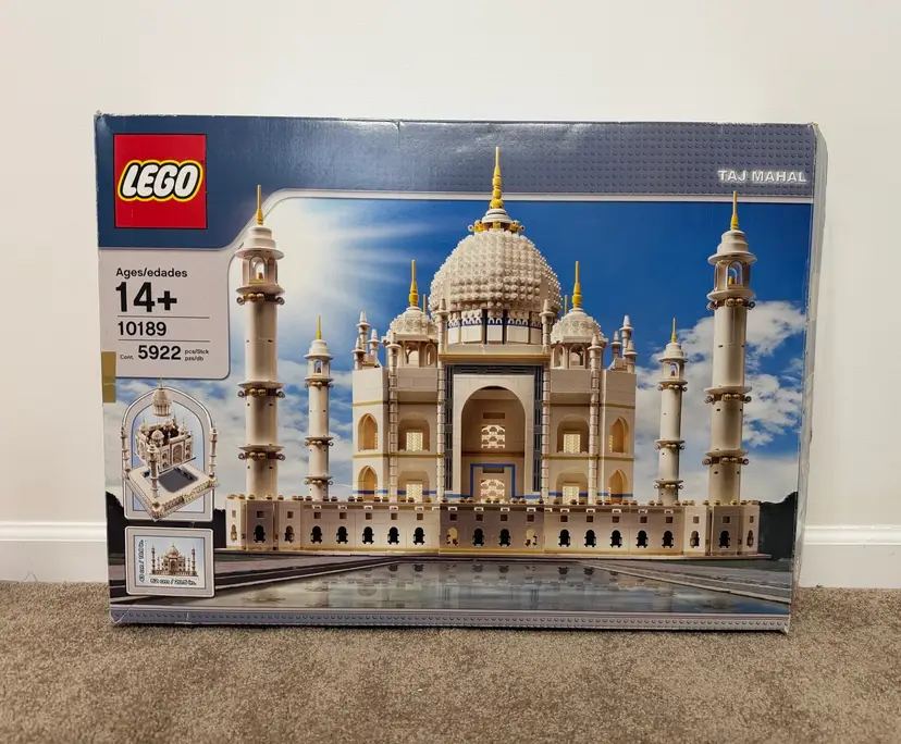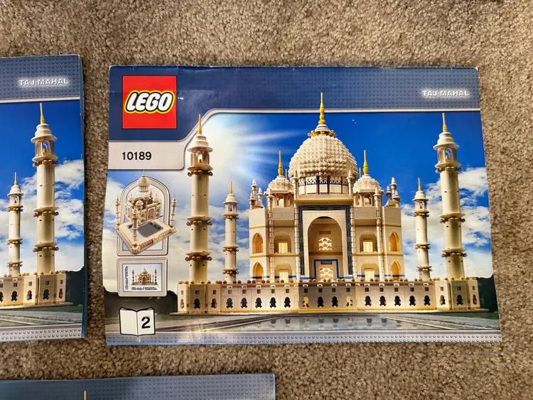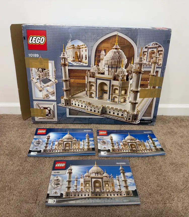 For sale: LEGO 10189 Creator Taj Mahal With Box And Instructions Set was built 2 years ago and was 100% complete. Some Pieces have slight yellowing and dust from display. I never claim used sets as 100% complete because prices always find their way missing during disassembly but will be 99.9% complete. I will be partially disassembling for shipping Box has some wear and tape on it Instructions some creasing See all pictures Any questions shoot me a dm