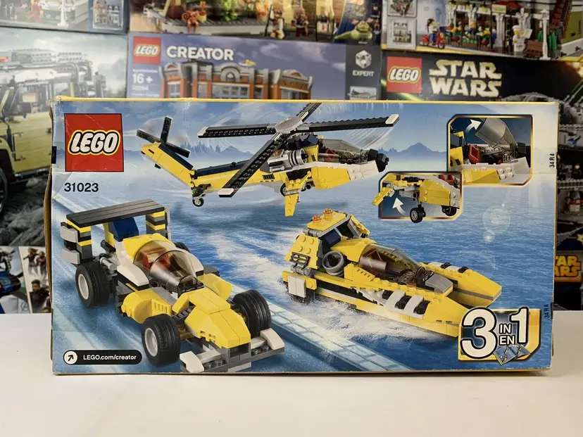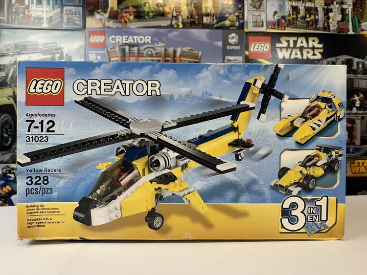 Interests: Helicopter Custom Bundle: No Packaging: Box MPN: 31023 Item Length: 13.9 in Item Height: 2.3 in Item Width: 7.5 in Age Level: 7-12 Brand: LEGO LEGO Theme: CREATOR Number of Pieces: 328 Release Year: 2014 LEGO Set Number: 31023 LEGO Set Name: Yellow Racers