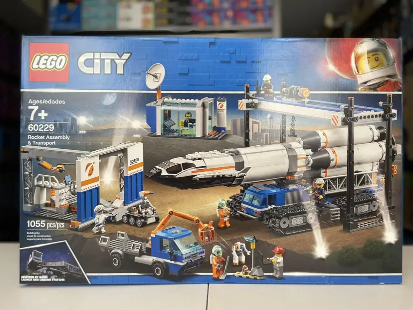 Product Line (LEGO Theme): City Year: 2019 LEGO Character: Astronaut, Scientist, Ground Technician, Lab Mechanic, Launch Director Packaging: Box Features: Retired LEGO City Space set Material: Plastic LEGO Subtheme: Space Port MPN: 60229 Interests: Space Age Level: 5-8, 7+ Brand: LEGO LEGO Theme: City Space Port Number of Pieces: 1055 Release Year: 2019 LEGO Set Number: 60229 LEGO Set Name: Rocket Assembly & Transport