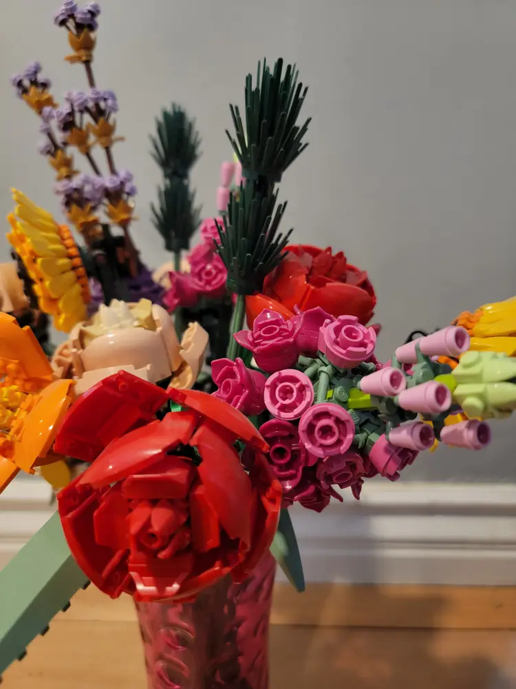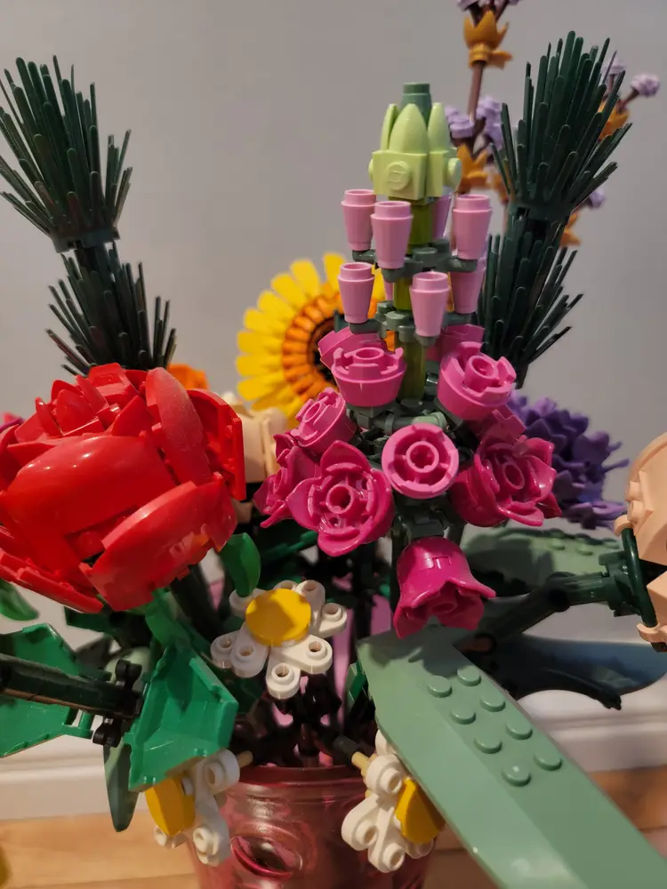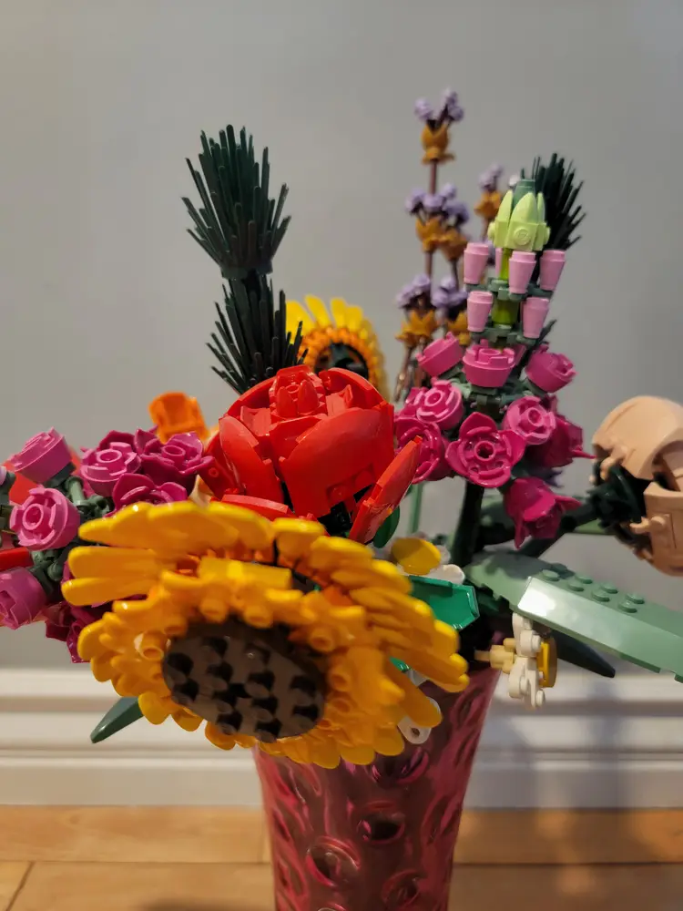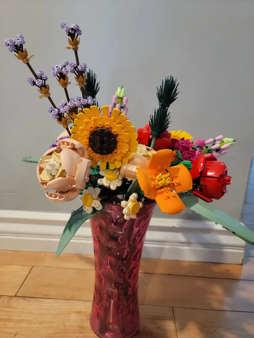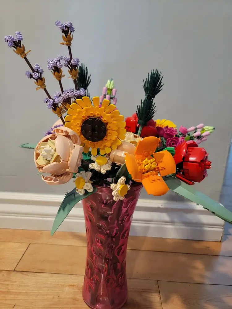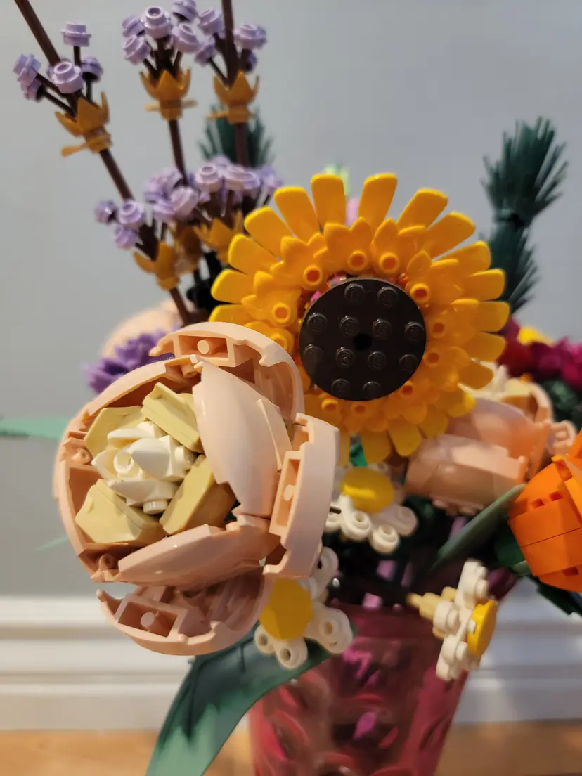 Used Lego botanical bundle which includes sets 10280 - Flower Bouquet, 40460 - Roses, and 40524 - Sunflowers. The listing is for the Lego sets only and DOES NOT include the vase, any boxes, or instructions. Adult owned in a non-smoking, no pet home. I have not confirmed that the sets are 100% complete. They were built and displayed only, but it's possible a piece or two have fallen off over time.
