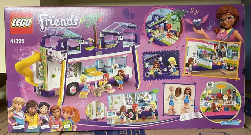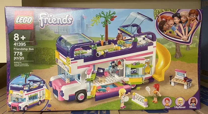 Product Line (LEGO Theme): Friends Year: 2020 LEGO Character: Mia, Olivia, Stephanie Custom Bundle: No Packaging: Box Material: Plastic Recommended Age Range: 8+ Modified Item: No MPN: 41395 Item Length: 21.26" Interests: Vehicles Item Height: 3.58" Item Width: 11.1" Age Level: 8 years and up Brand: LEGO LEGO Theme: LEGO Friends Number of Pieces: 778 LEGO Set Number: 41395 LEGO Set Name: Friendship Bus
