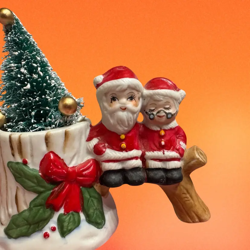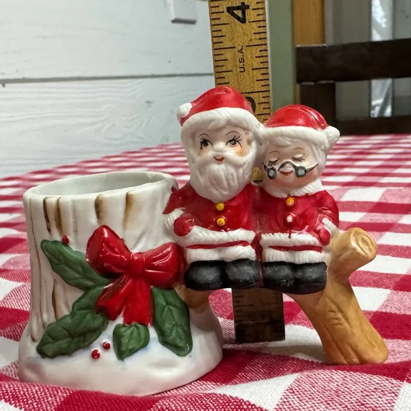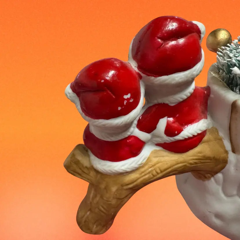 3” tall x 4” wide bisque figurine small planter. Great vintage condition. Some wear on the cold paint as shown in the photos