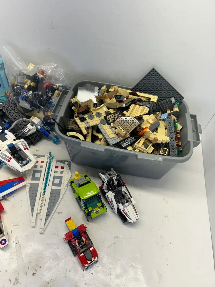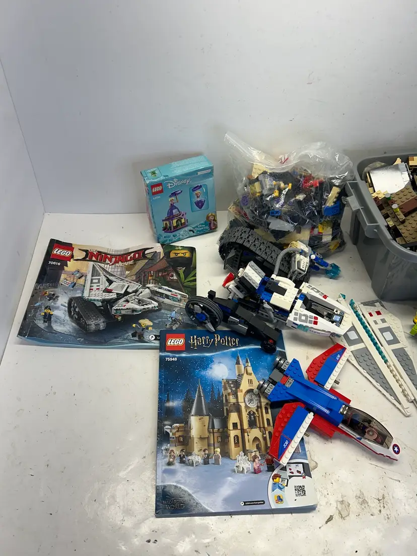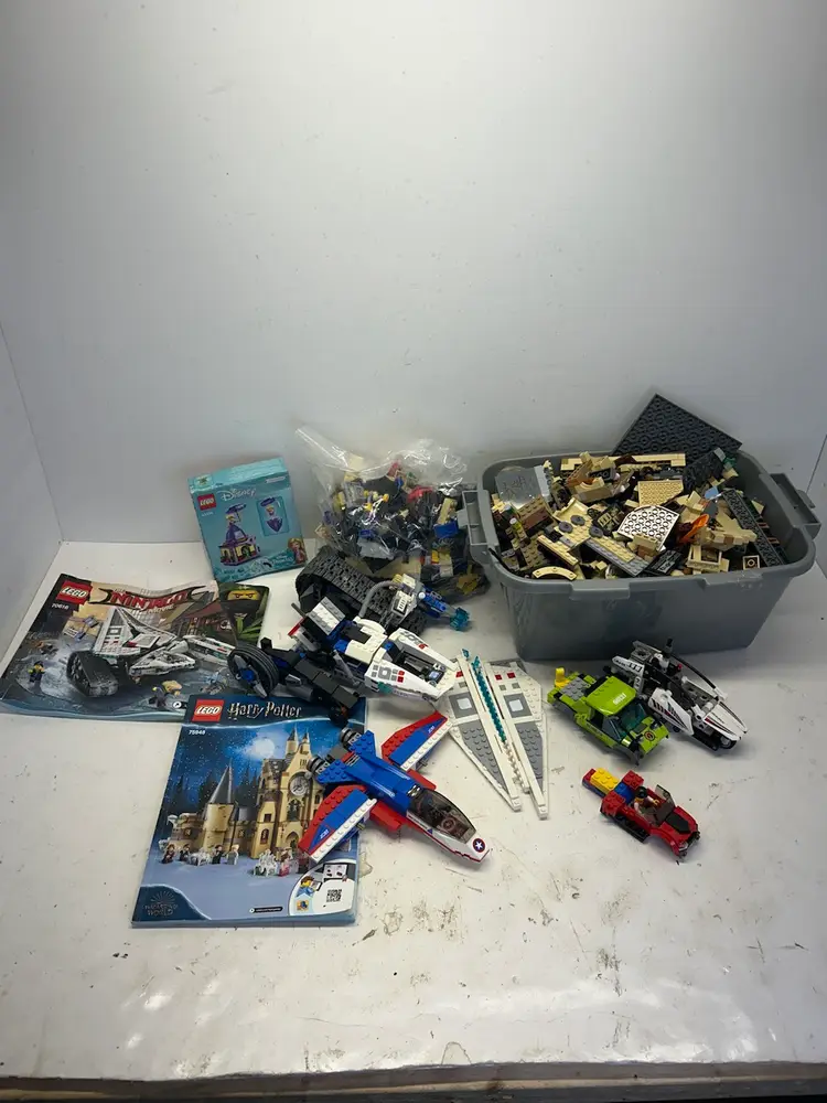 Mixed parts and pieces. Mostly sets from Harry Potter. I do believe there are most if not all of the prices of the castle present, but I am not certain how complete it is. 2 mini figures.Please see photos!