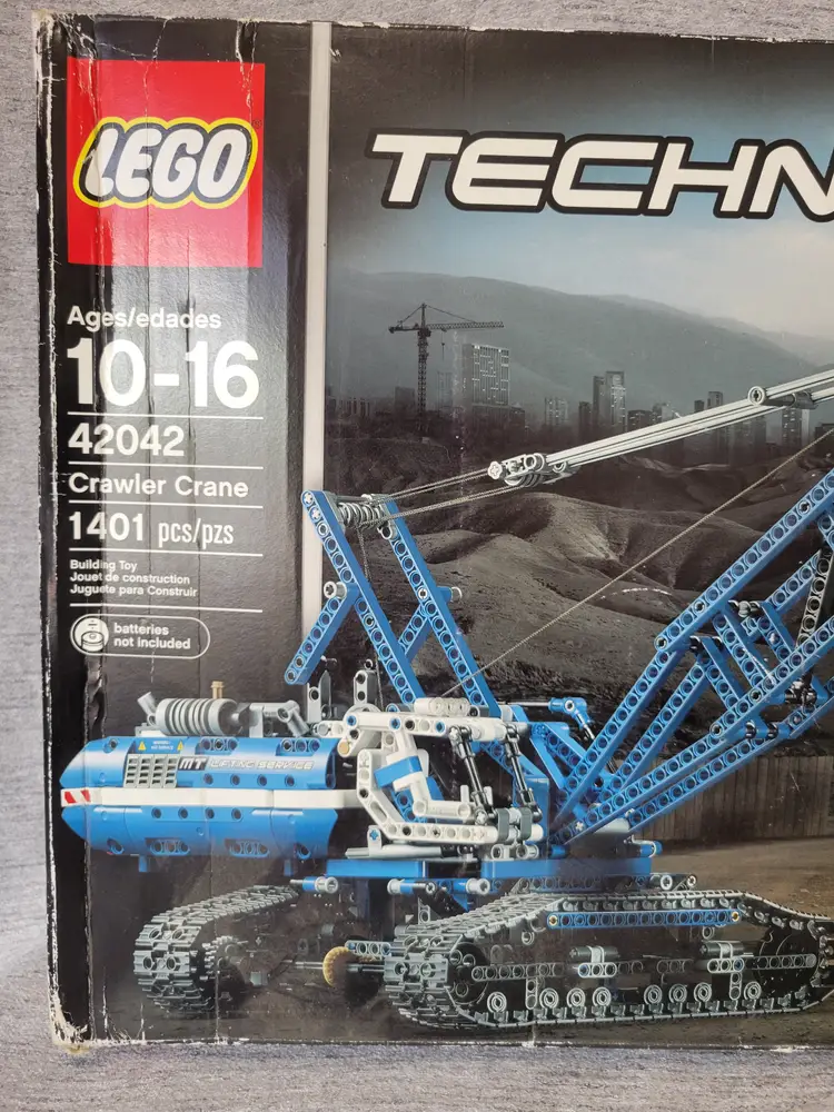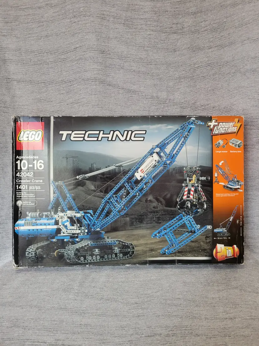 Make way for the powerful LEGO® Technic Crawler Crane! This huge, robust 2-in-1 model comes with an array of realistic details and exciting features. Activate the included Power Functions motor and use the joysticks to operate the boom, raise and lower the claw, rotate the superstructure and drive the huge caterpillar tracks that maneuver this mighty machine! Includes an authentic double winch and pulley system with extensive cabling, working claw, detailed cab with tilt function, exhaust pipe and a ventilation grill. You can also extend the boom for even greater height! A cool blue and white color scheme adds the finishing touch to this awesome model. Rebuilds into a huge Mobile Tower Crane!