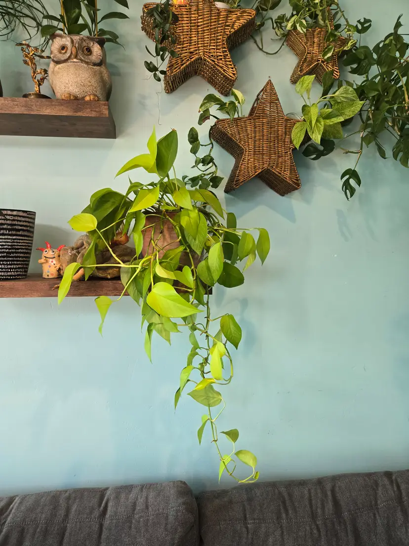 This listing is for a mature lemon lime potho, exact plant in photo. Decorate pot and/or trellis not included Cross posted