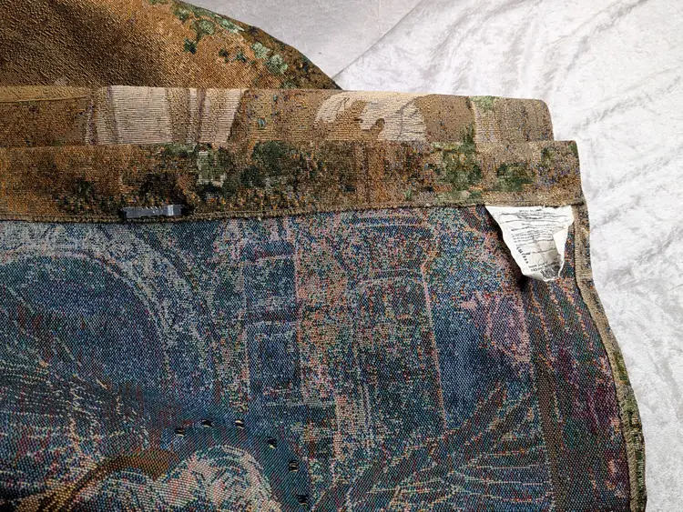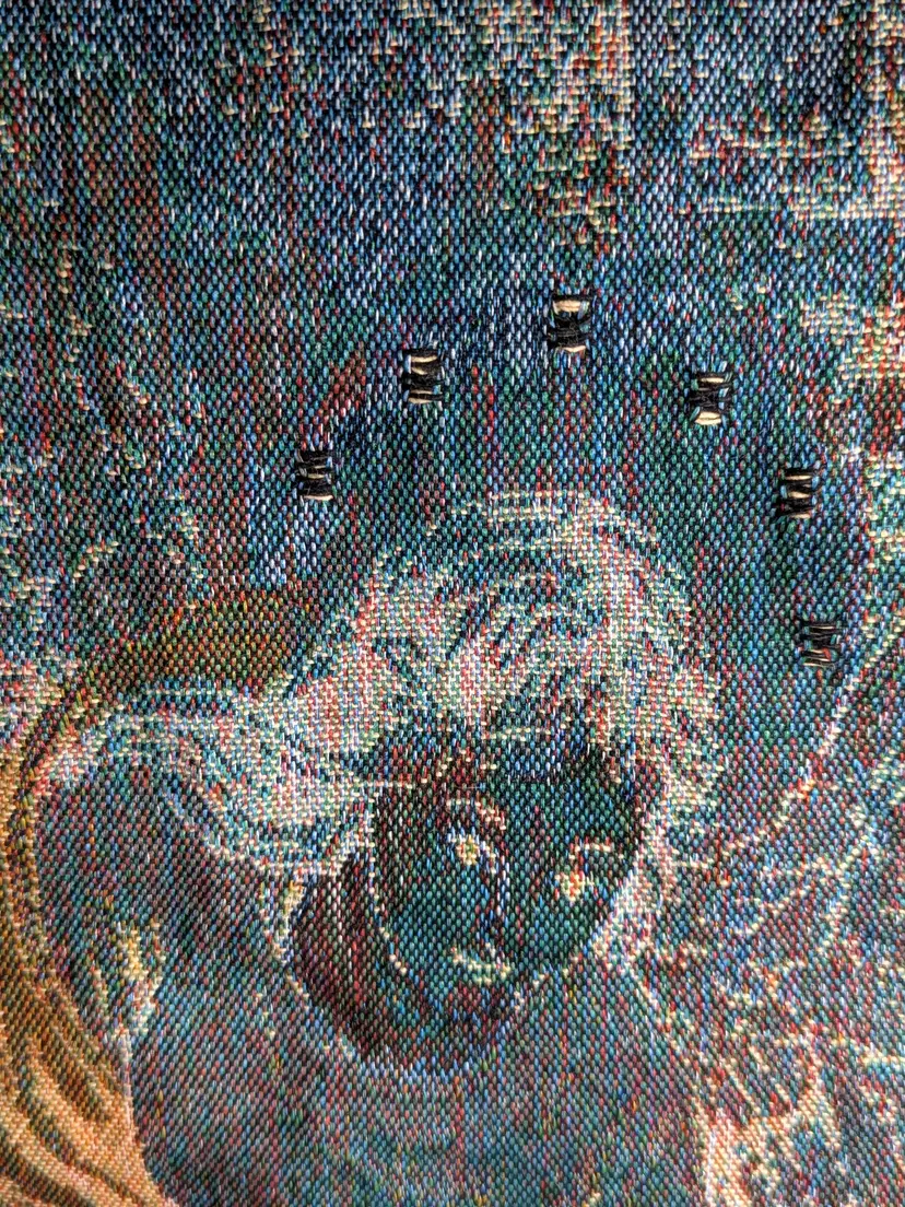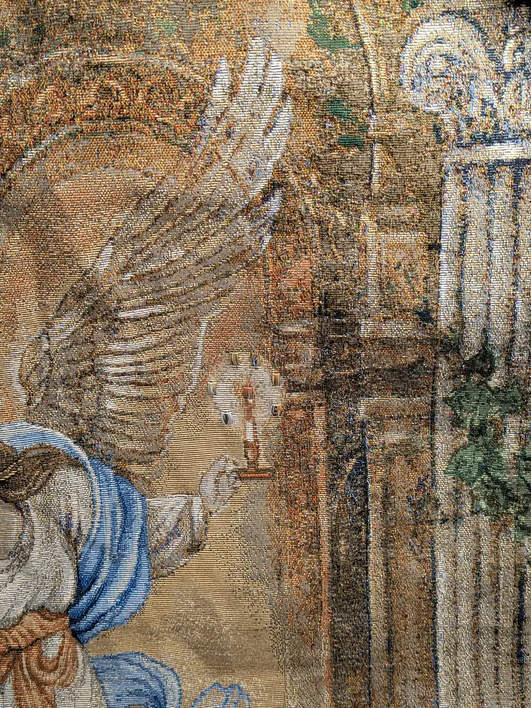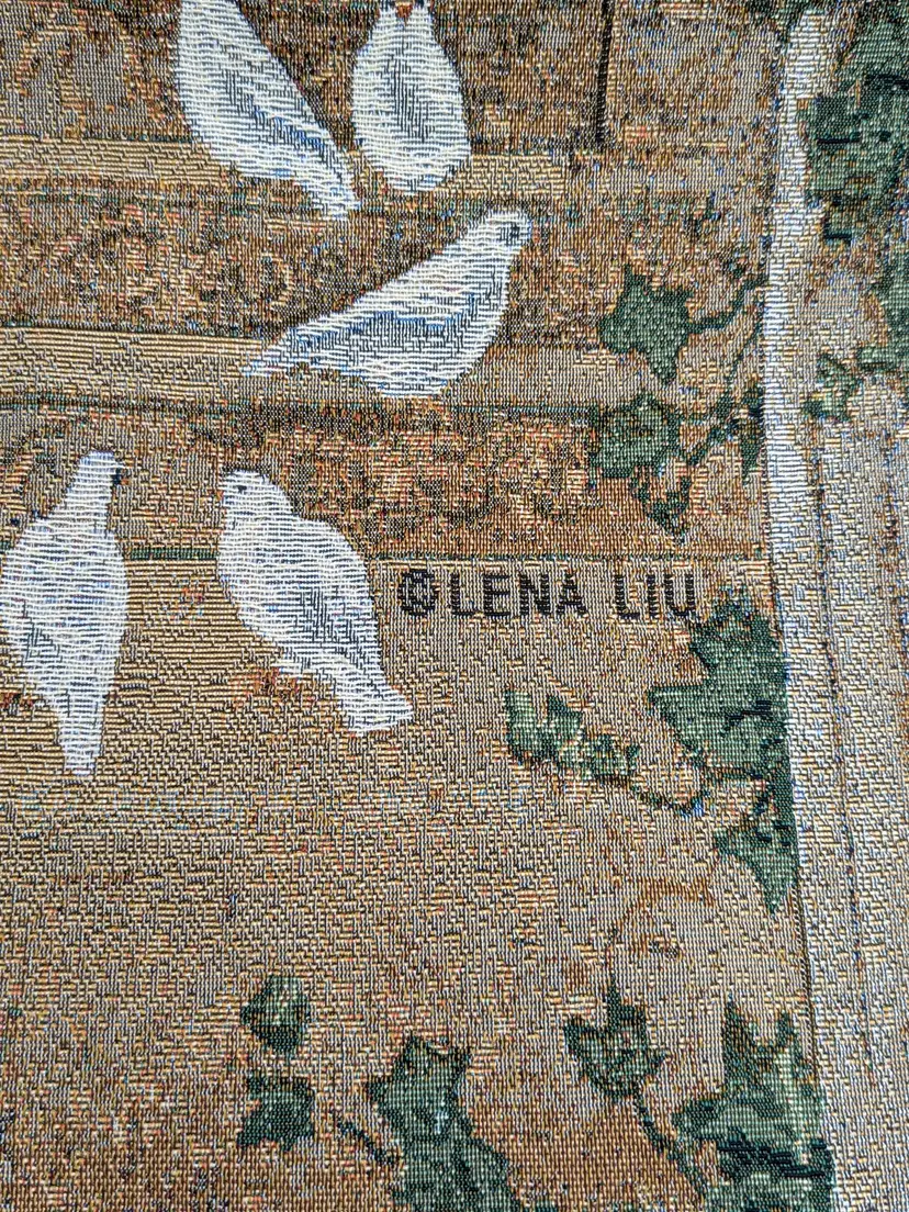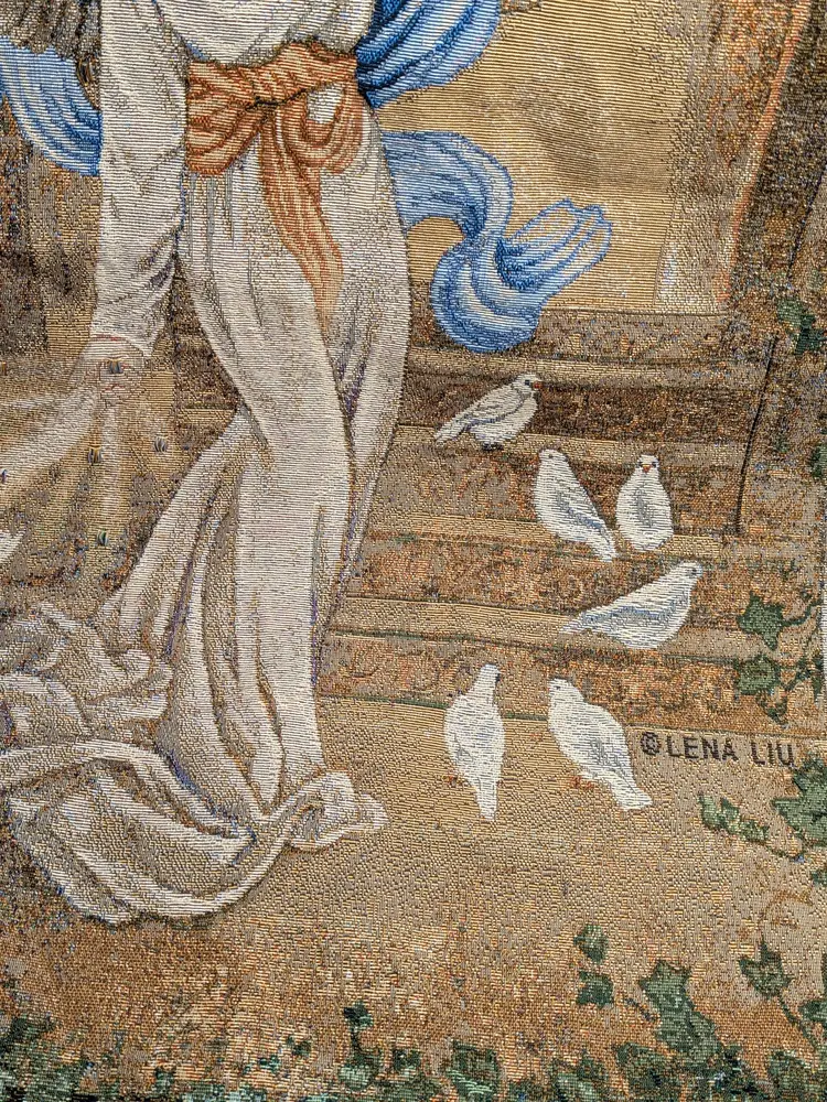 Lena Liu "Angel of Light" Religious Wall Art Hanging Tapestry with white doves .It measures 25.5 x 36.5" Has a pocket on the top for a rod or it has a metal hanger on the back. It has holes where light can flow threw her wings if put in front of lights maybe string lights.I put and old curtain rod in the pocket to hang it up for the photo. Its not included. Made in USA Perfect for Castlecore or old World decor. Great condition Clean with no damage. no weird smells. Please check the photos for details. Comes from a smoke free home. We do have pets.