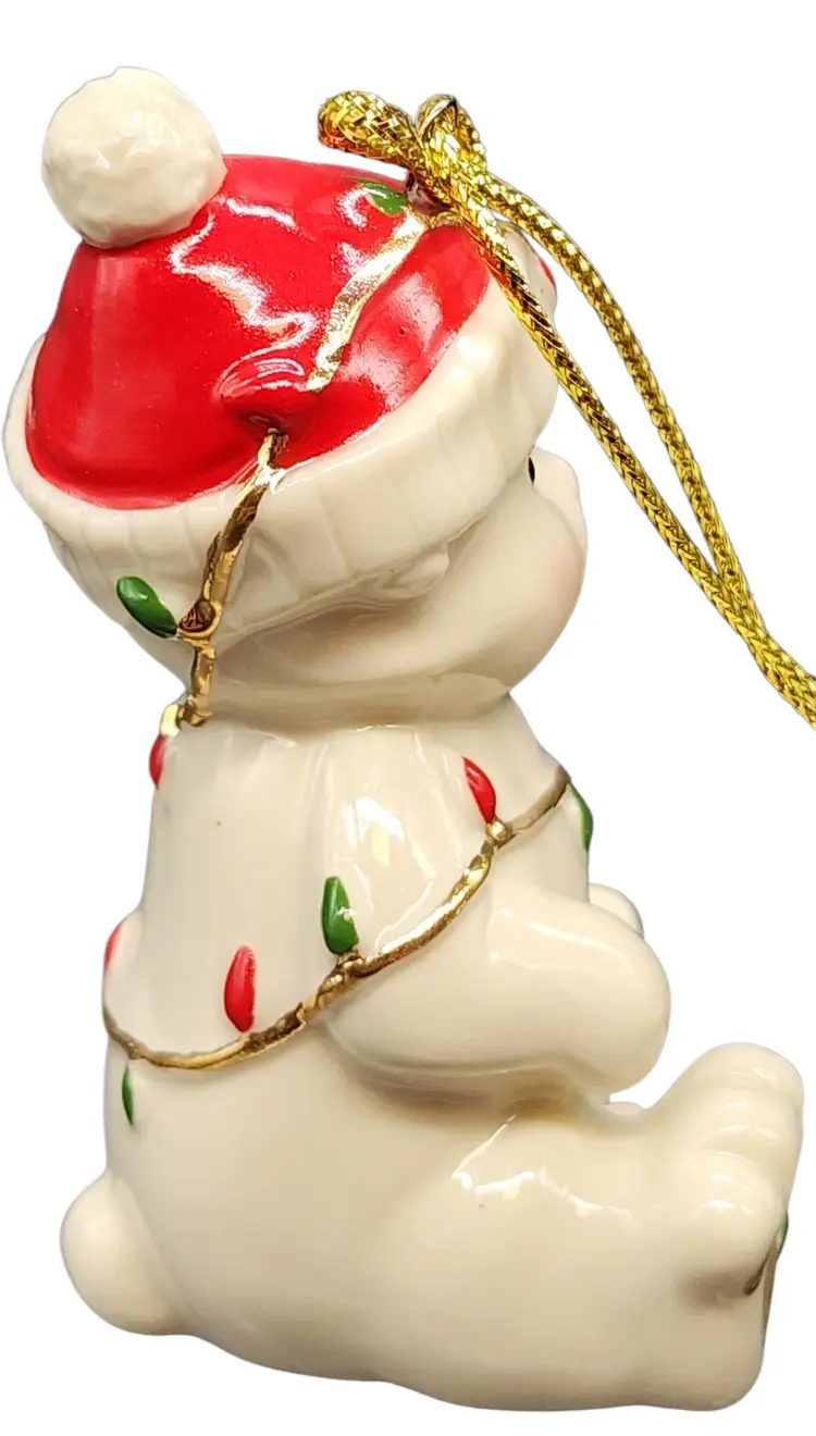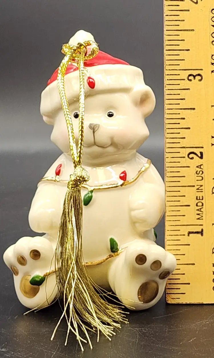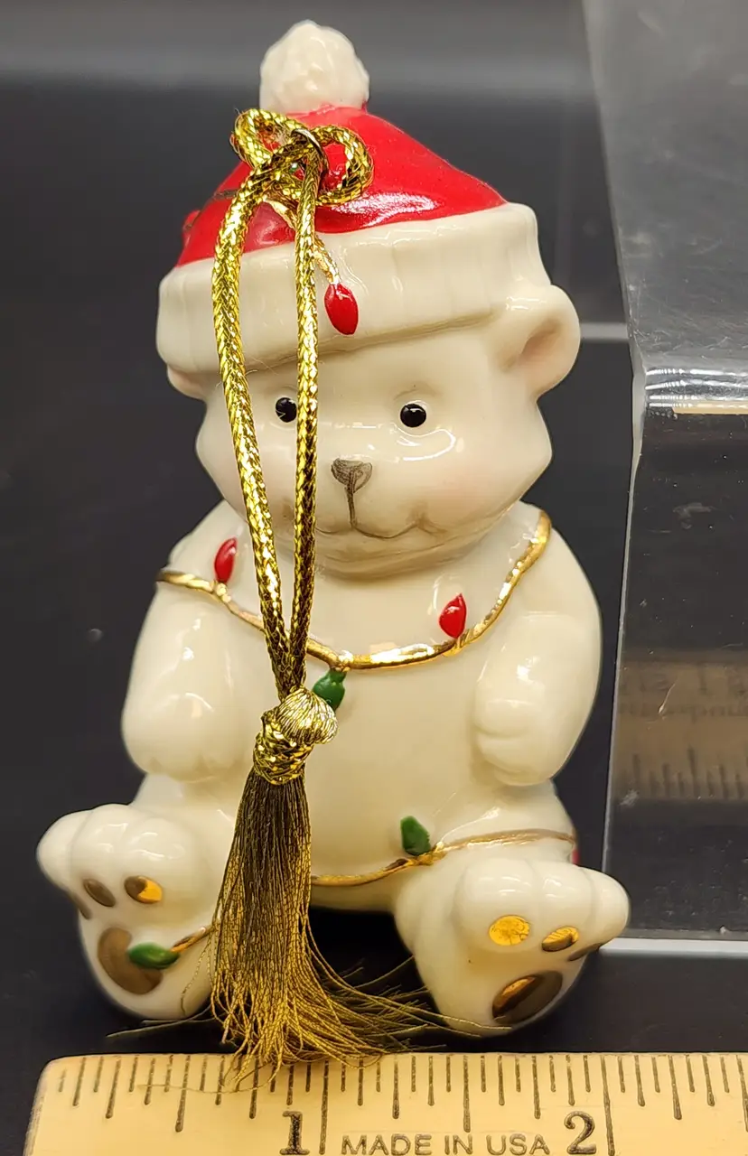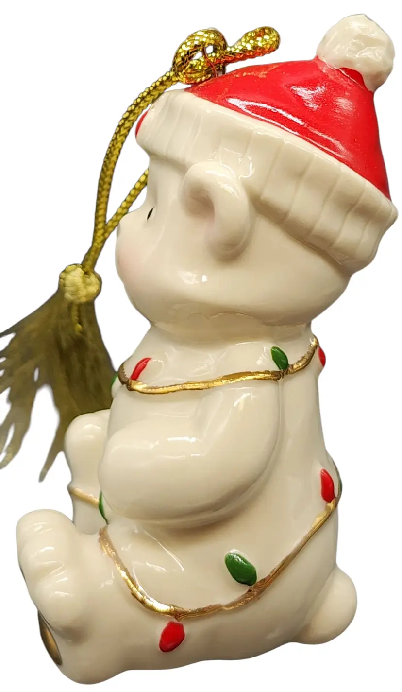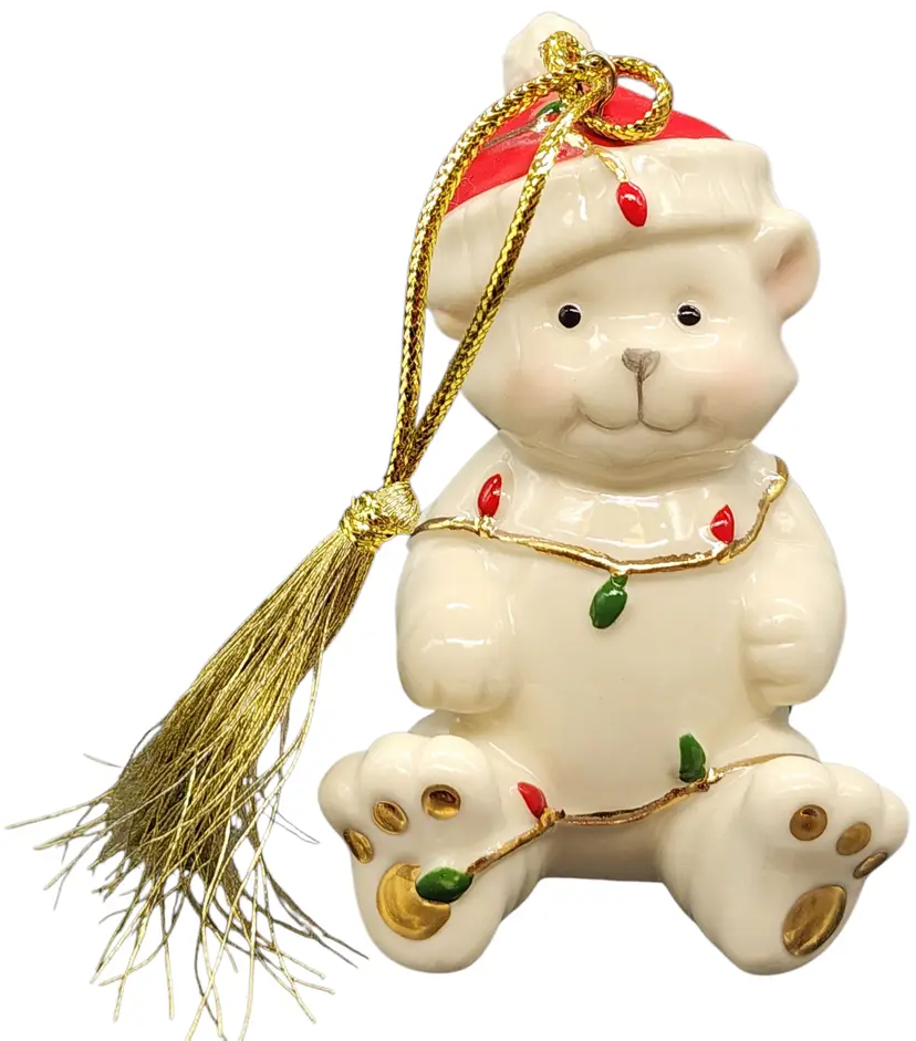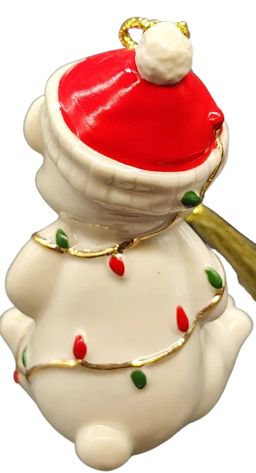 The Lenox American By Design Christmas Teddy Bear Ornament is a small, porcelain ornament in the shape of a snowman, featuring a festive red box. Manufactured in 2017, this contemporary style ornament is a part of the Ornaments collection by Lenox. The ornament, measuring 3 inches in length, 4 inches in height, and 2 inches in width, is a perfect addition to any Christmas decor and would make a lovely gift for any recipient. With its intricate design and colorful pattern, this collectible ornament is sure to bring joy and charm to the holiday season.