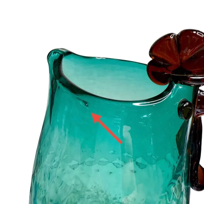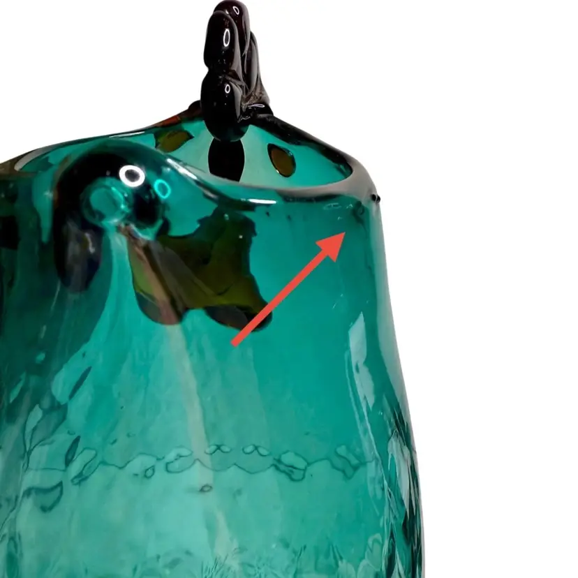 Condition: Excess spot of glass on the top edge, two views shown. Two very faint black specs in the glass.