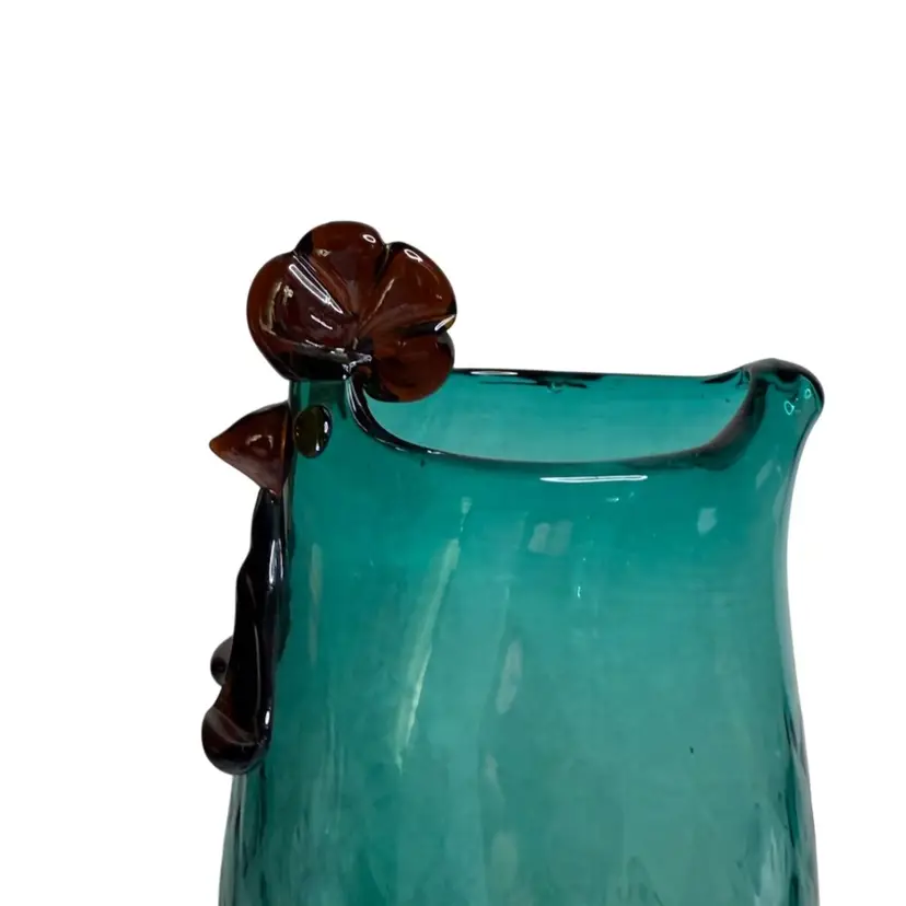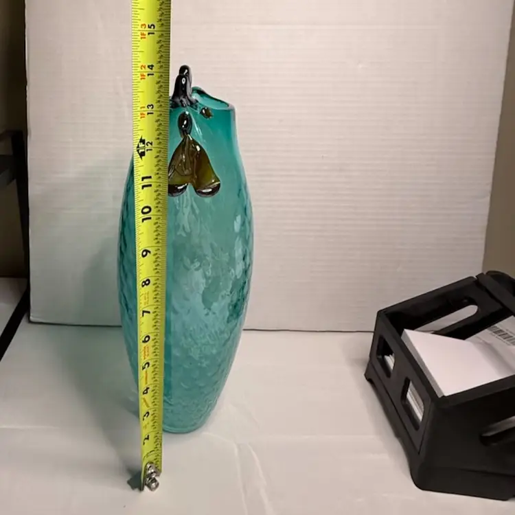 Lenox Art Glass Collection Artisanal Rooster vase, Blue Aqua/Teal with soft white splatters at the base that transitions to clear aqua/teal to the top.