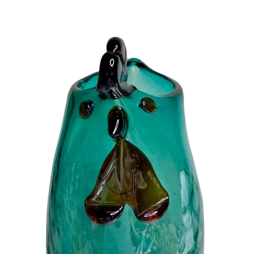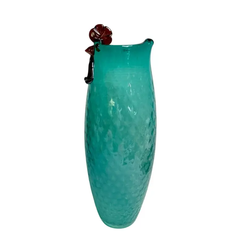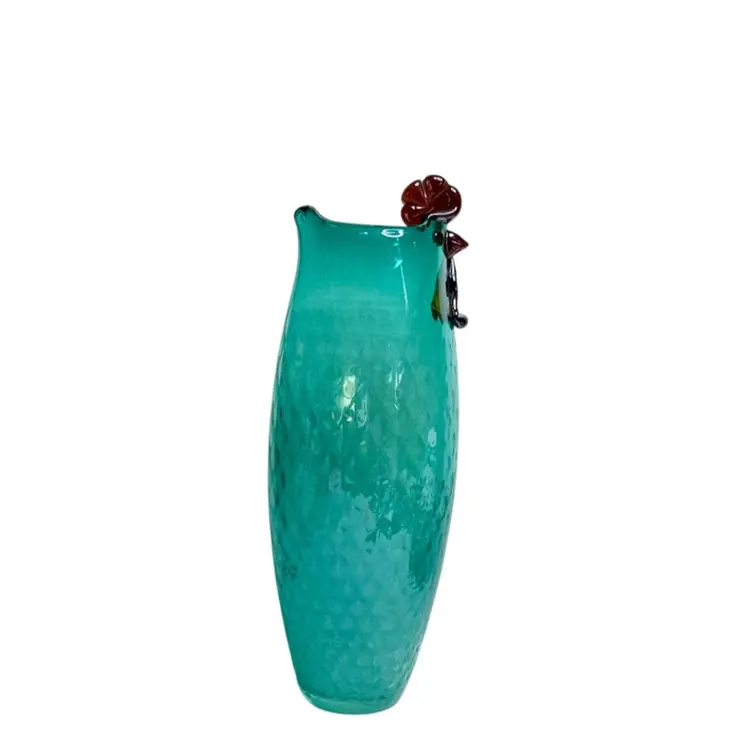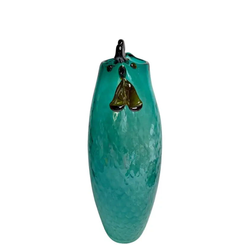 Lenox Art Glass Collection Veuue Artisanal Rooster Blue Aqua/Teal Vase Diamond Optics 14.5” T x 3” W (Base) READ
