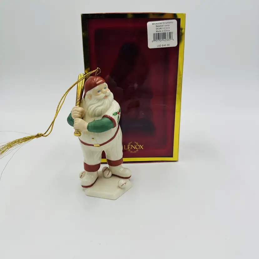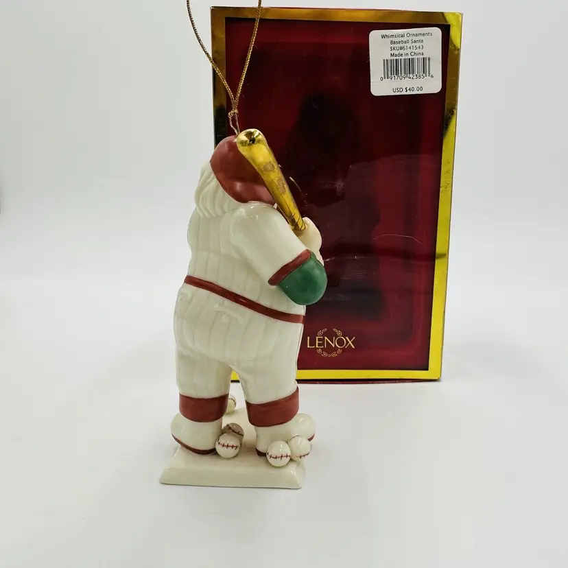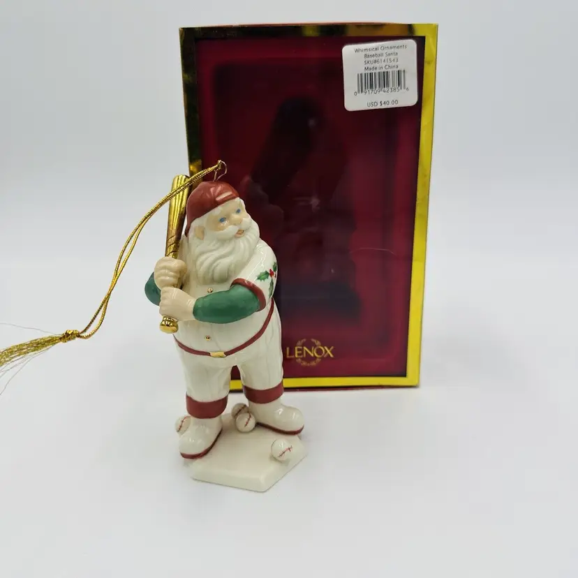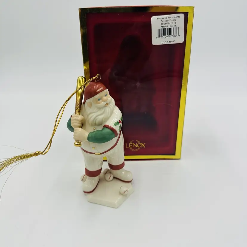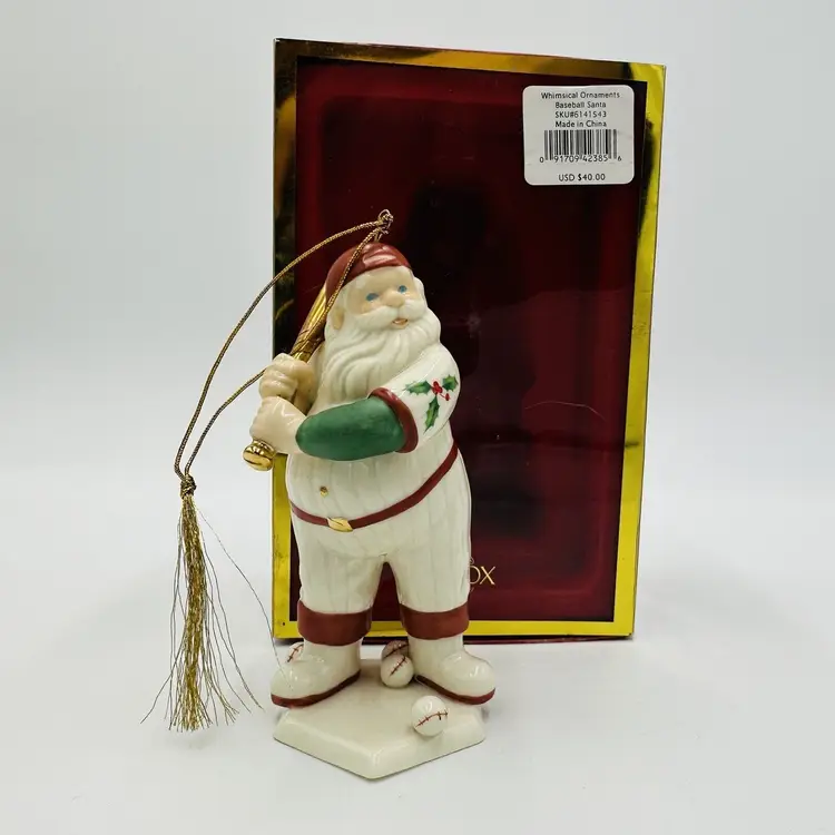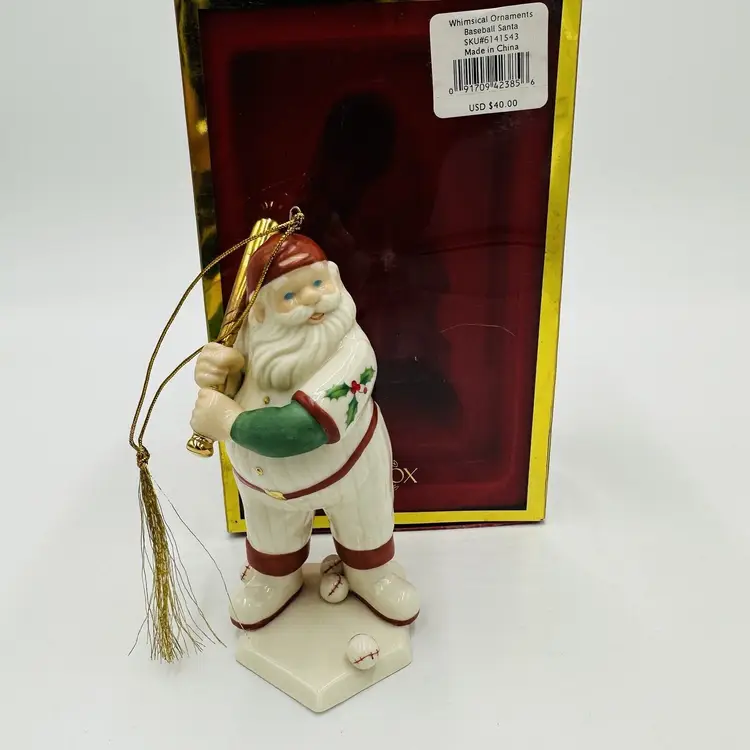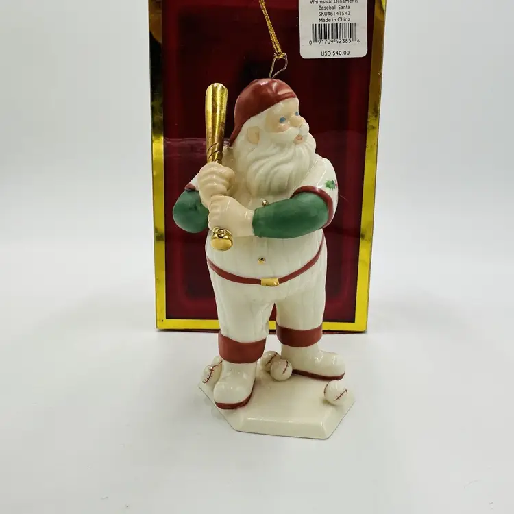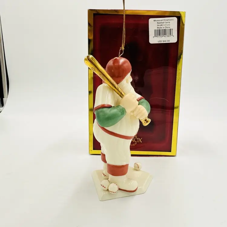 Number of Items: 1 Department: Adult Item Width: 2 in Item Length: 4 in Item Height: 6 in Subject: Baseball Collection: Ornaments Occasion: Christmas Vintage: Yes Size: Small Country/Region of Manufacture: United States Material: Porcelain Shape: Santa Character: Baseball Santa Franchise: Lenox Brand: Lenox Style: American Directoire Color: Multicolor Set Includes: Ornament Original/Licensed Reproduction: Original Theme: Baseball Type: Figurine