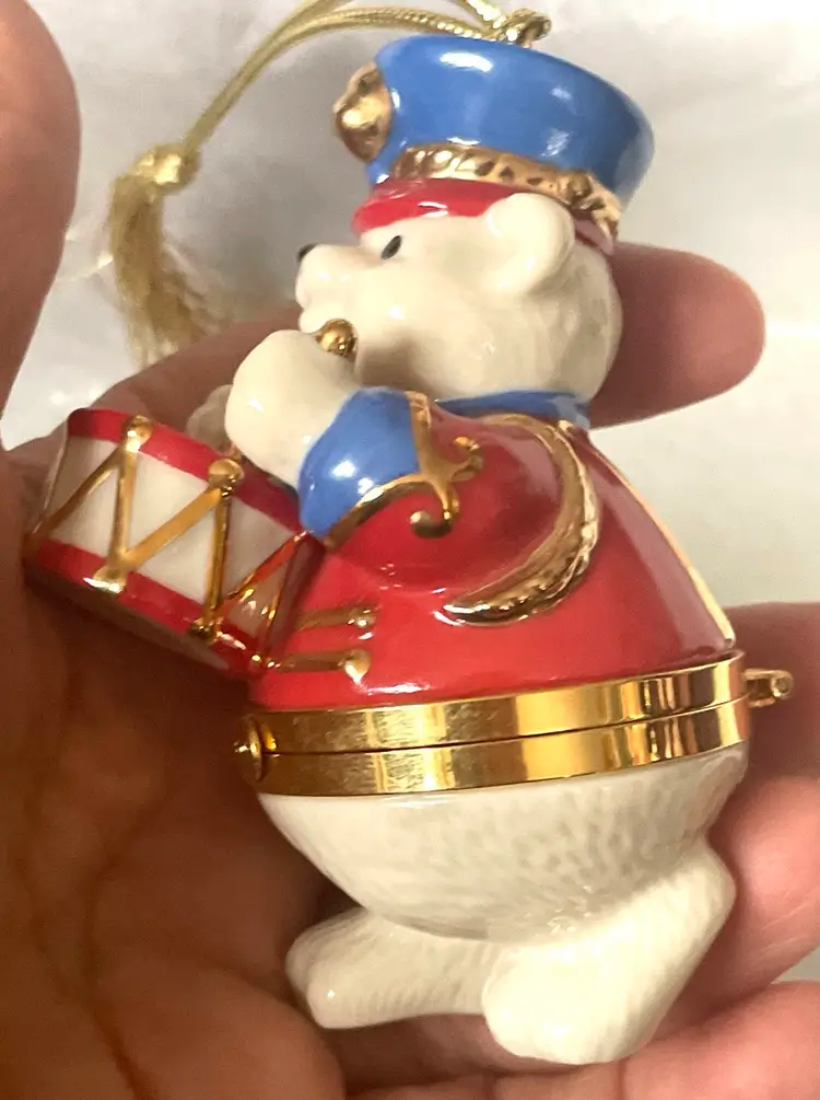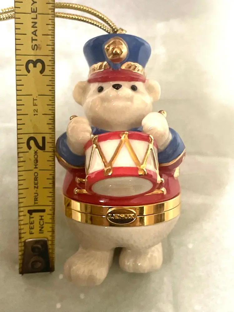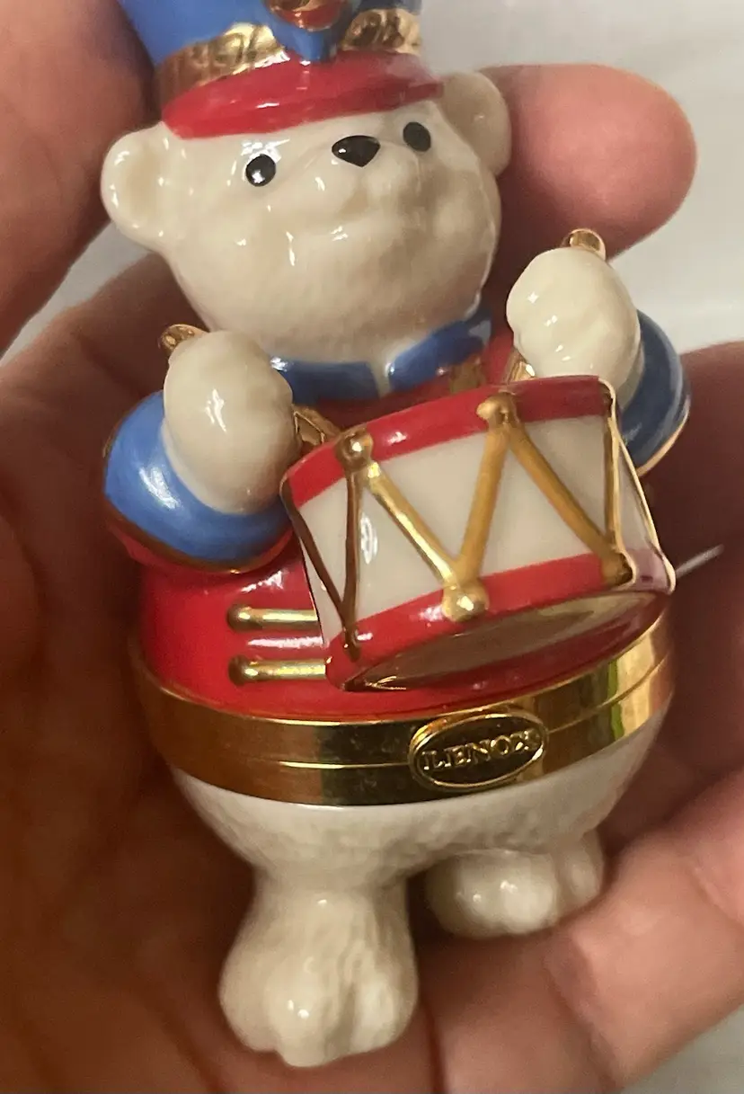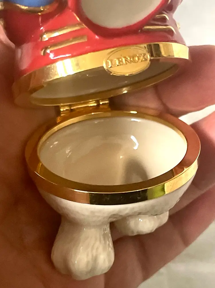 What a fun way to present a gift in Christmas morning tucked inside this Porcelain Lenox Teddy Bear Trinket box. Fun!!! Great condition with no chips, cracks, or scratches. Please view all photos of this special find.