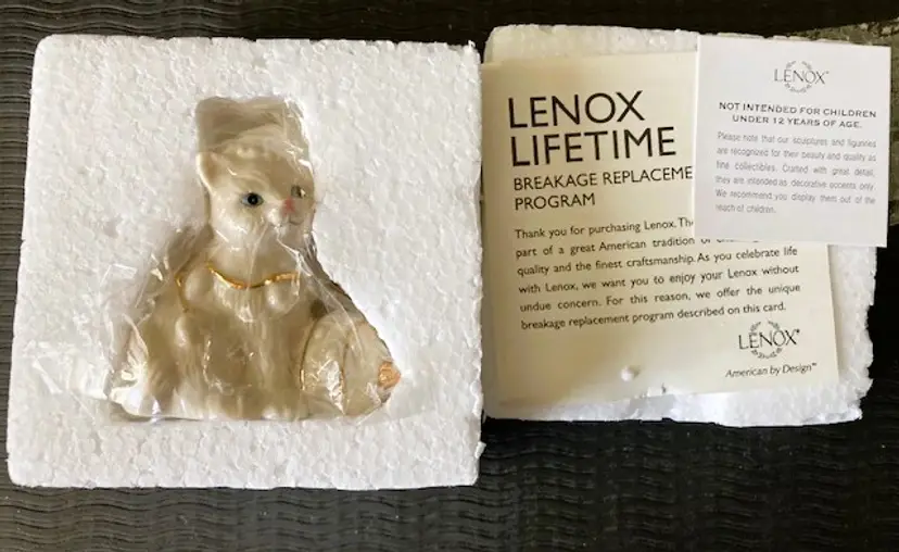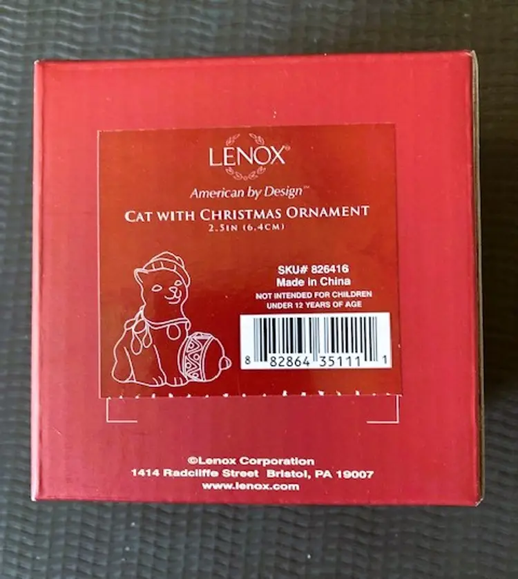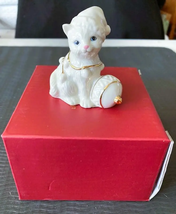 Lenox American By Design Cat With Christmas Ornament 2.5" Figurine. NIB Excellent Condition