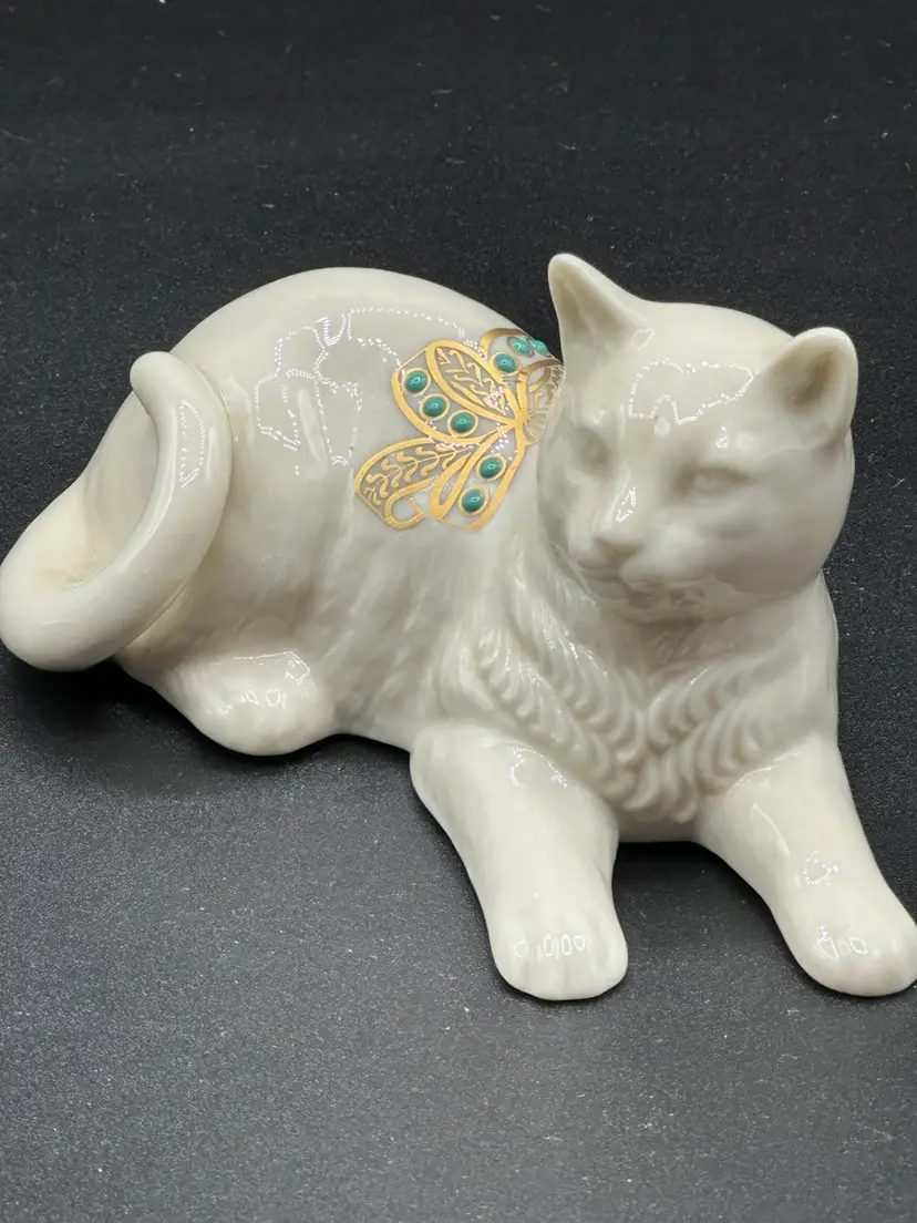 LENOX China Jewels Collection - USA - Sitting Cat With Design on Back - 5-1/4" long x 2-1/2" wide (at widest point) x 2" tall - In very good condition with no chips or cracks. I do not have the original box.