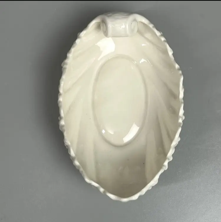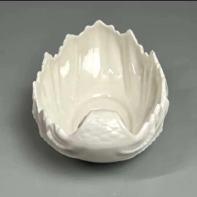 Lenox Cream Acanthus Leaf Sea Shell Leaf Candy Nut Dish Bowl USA Teal Mark. The dish is in excellent used condition with wear appropriate to age and use(check photos), feel free to ask questions measures 2.25"h by 6.25" by 3.75".