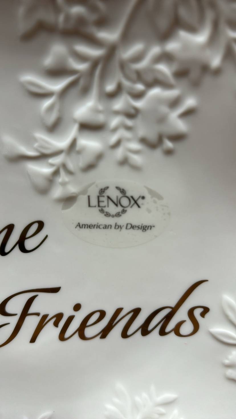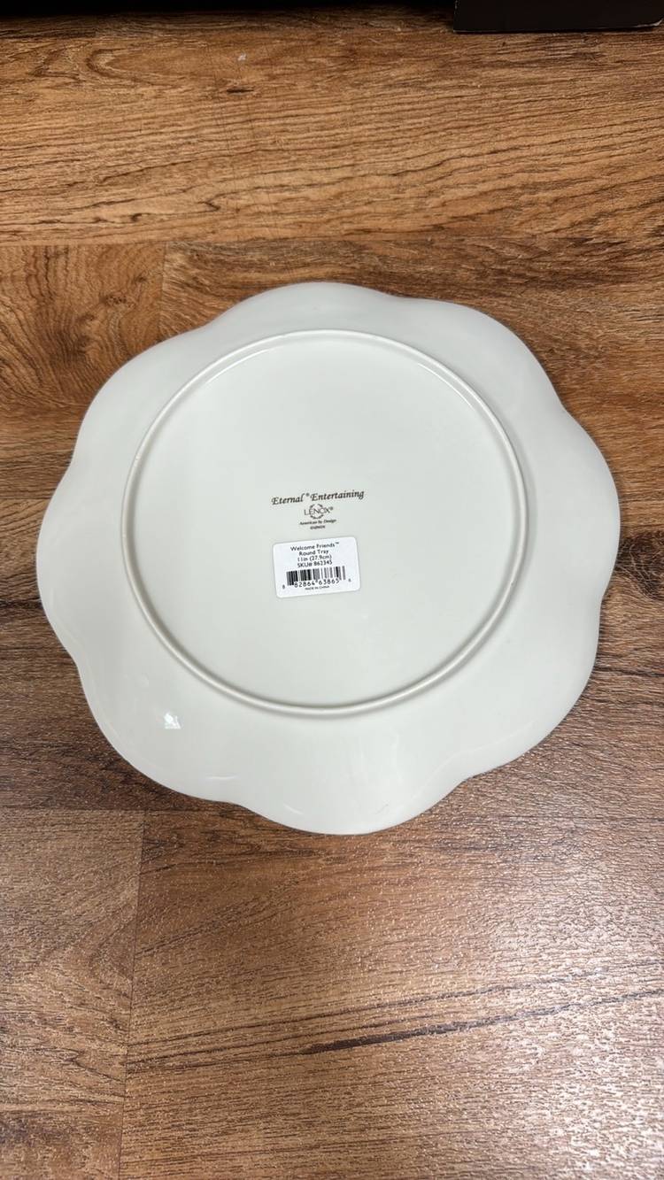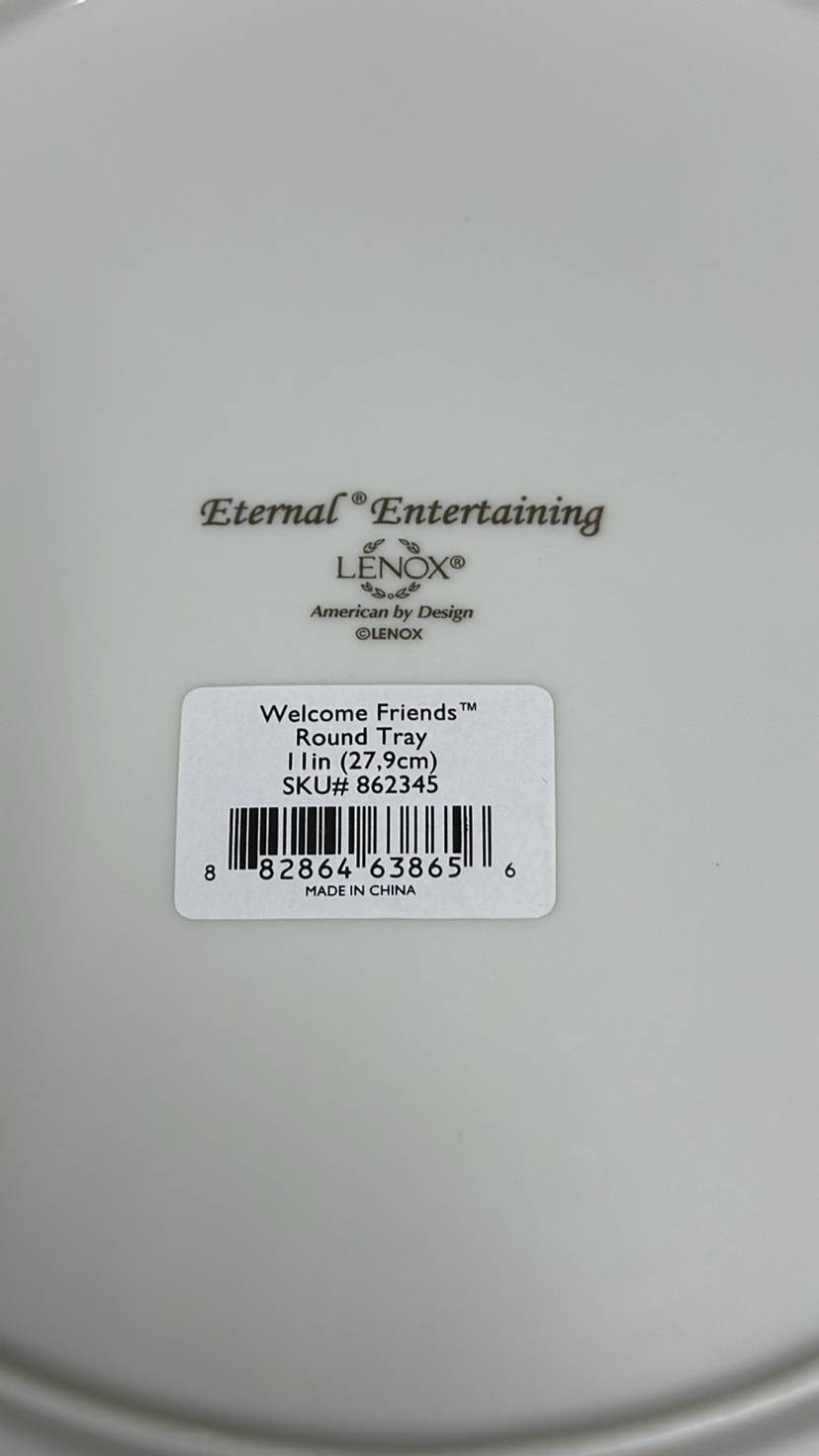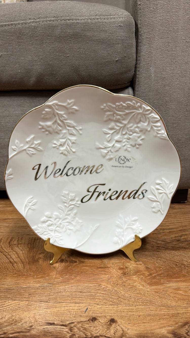 LENOX Eternal Entertaining “Welcome Friends” 11” plate Cream with gold lettering and gold trim New with tags no breaks or chips (49424p25)