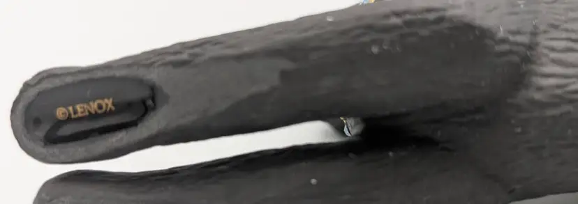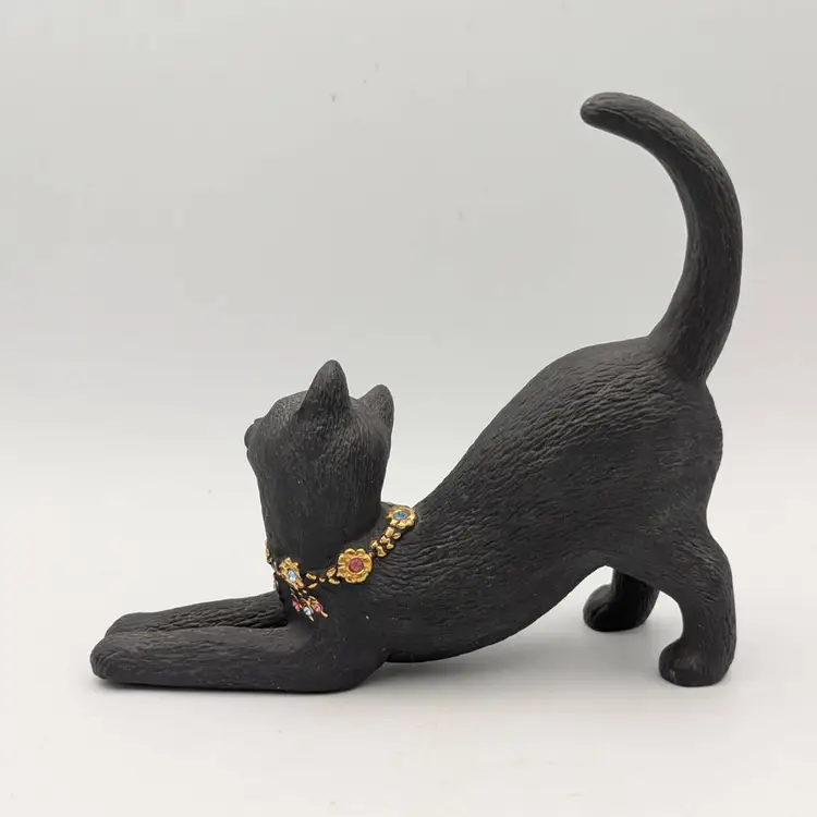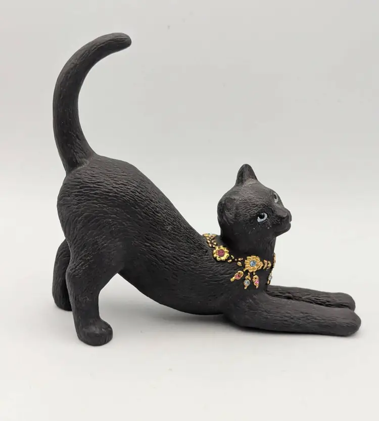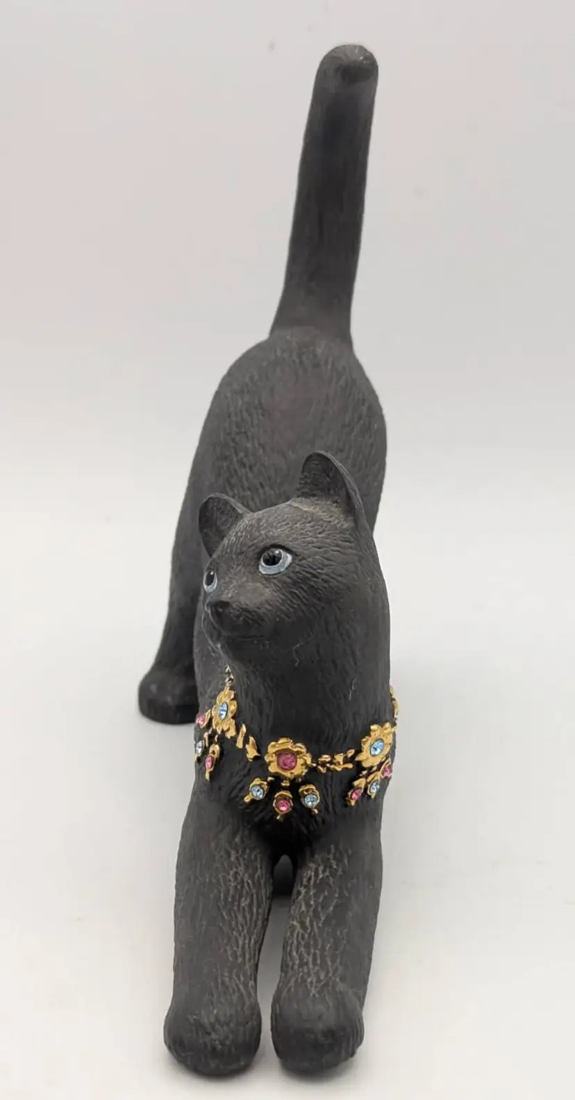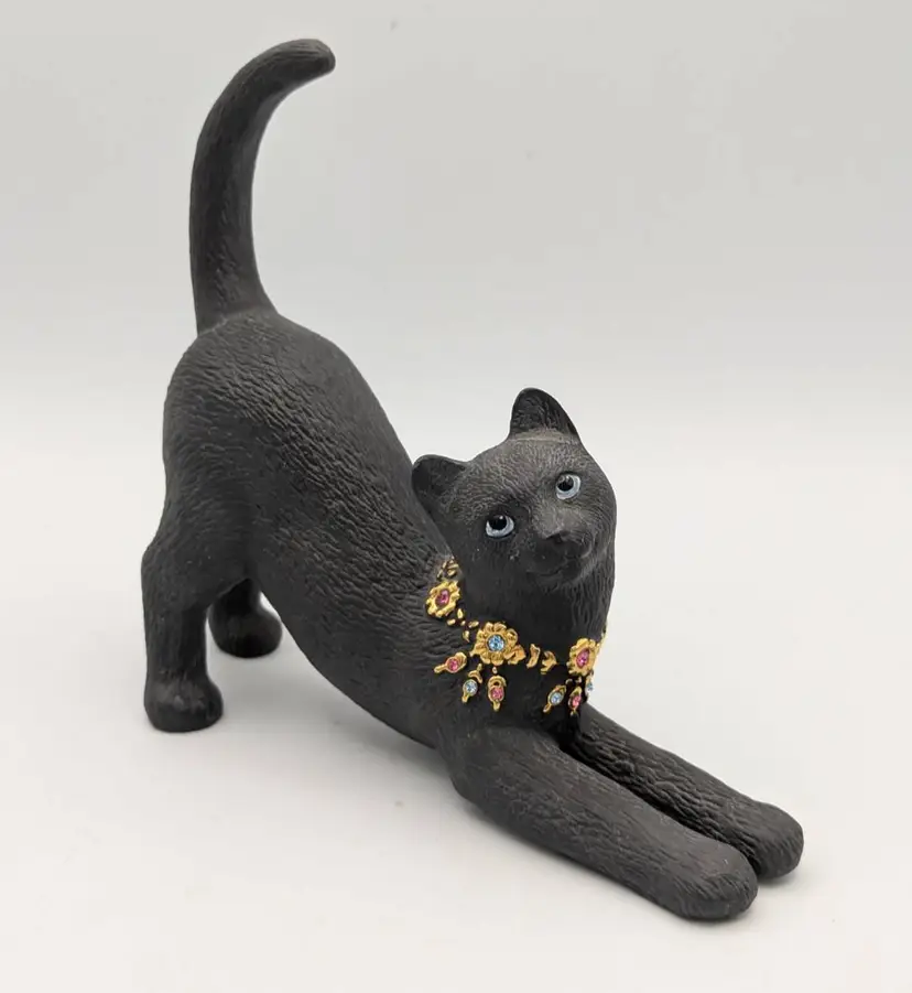 Lenox Night Whispurr Black Cat Figurine This Figurine measures 5" tall x 5 1/2" long x 2" wide Its crafted of Fine Black Porcelain and hand painted Is decorated with Full Lead Crystal Gems and Accented with 14 Karat Gold This is being sold as preowned- used. It was immensely enjoyed over the years. No cracks, chips. Jewels are all intact. Non smoking home Non pet home.