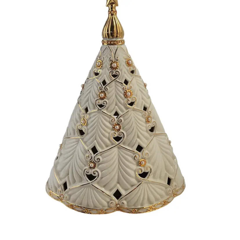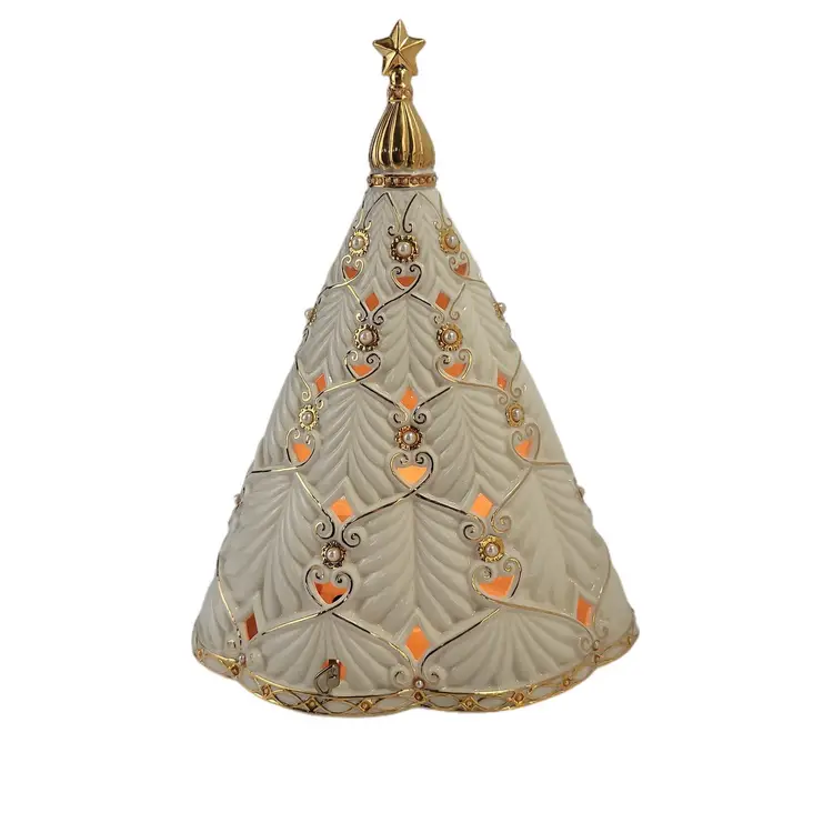 Sculpted with intricate detail, the Florentine & Pearl Tree Lit Figurine is even more festive when glowing with light. This unique and elegant pierced porcelain Christmas tree is decorated with hand-set faux pearls and touches of gold. Makes a wonderful display piece, and a lovely gift as well.