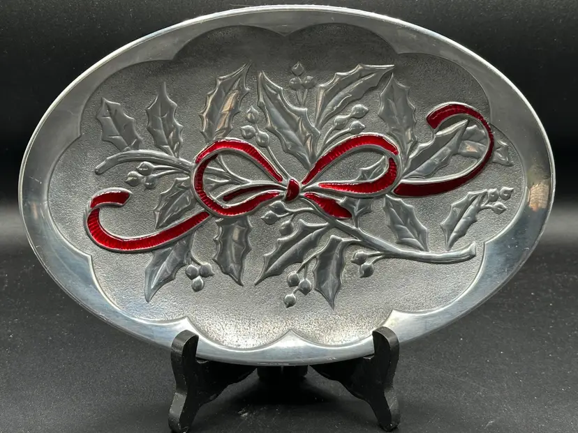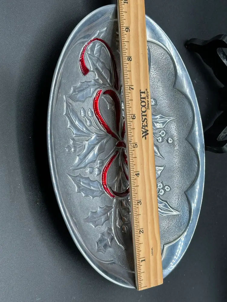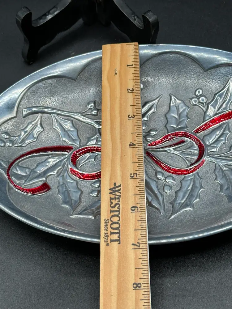 Lenox Joy Oval Trinket Tray Dish Christmas Holiday Red Bow And Holly