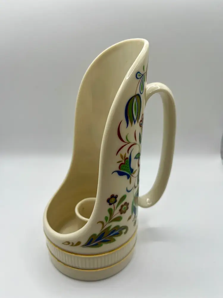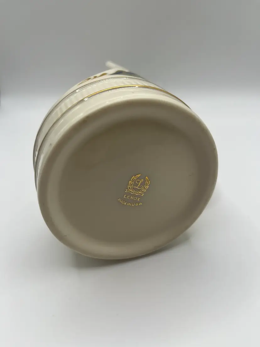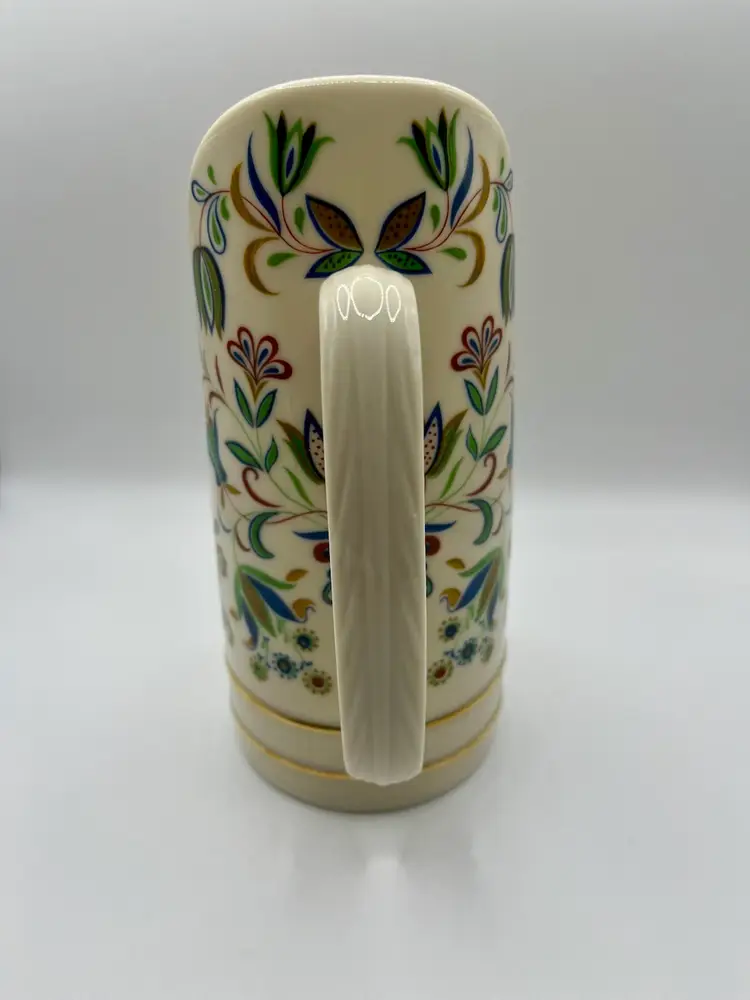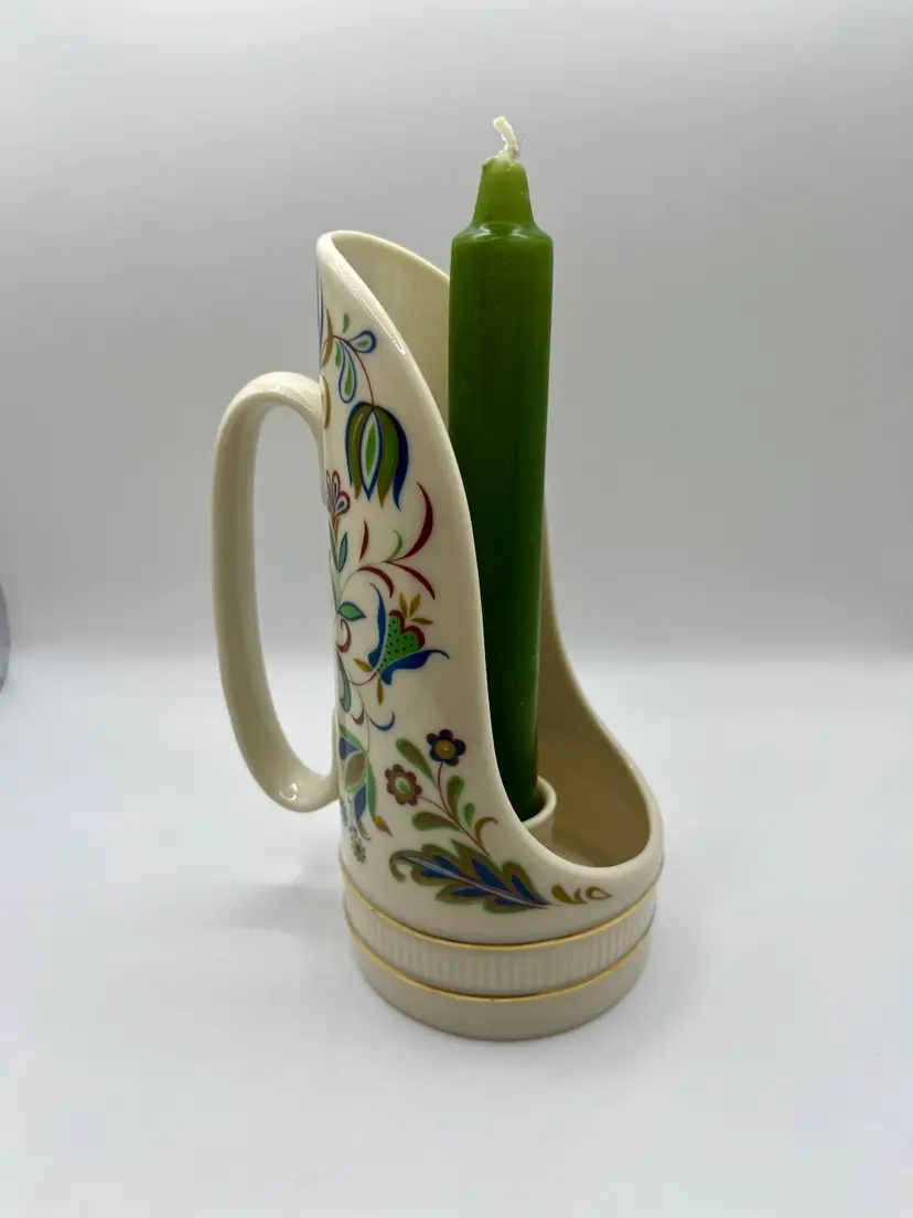 Lenox Nantucket Collection candlestick holder. Porcelain candle holder stand with handle. Blue, red and green floral and leaf. Made in USA