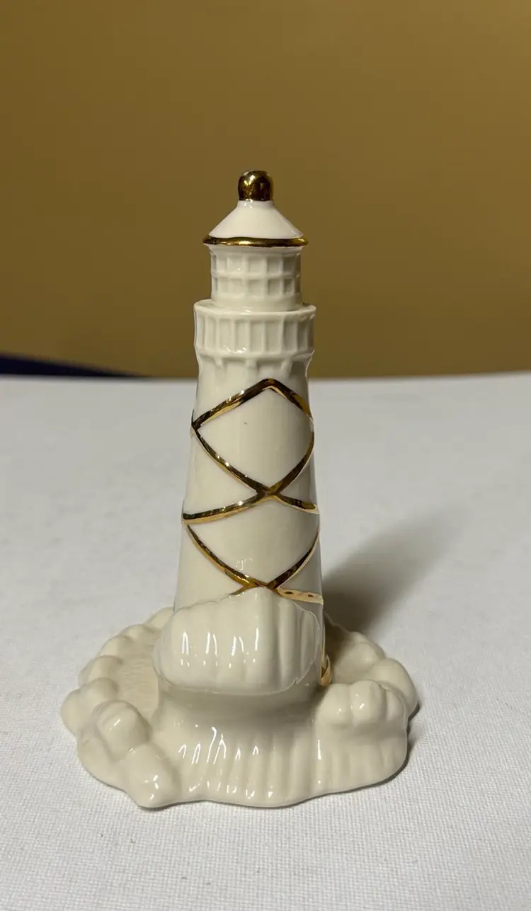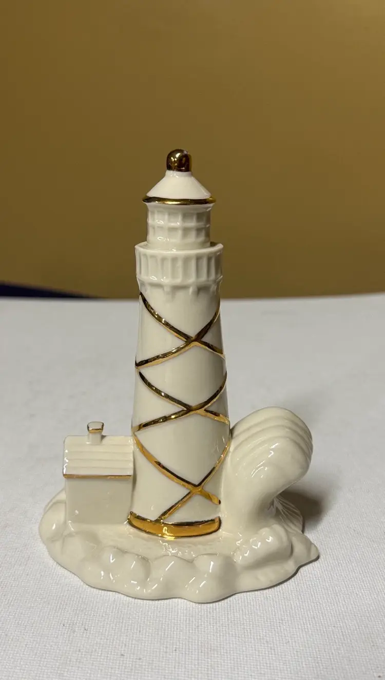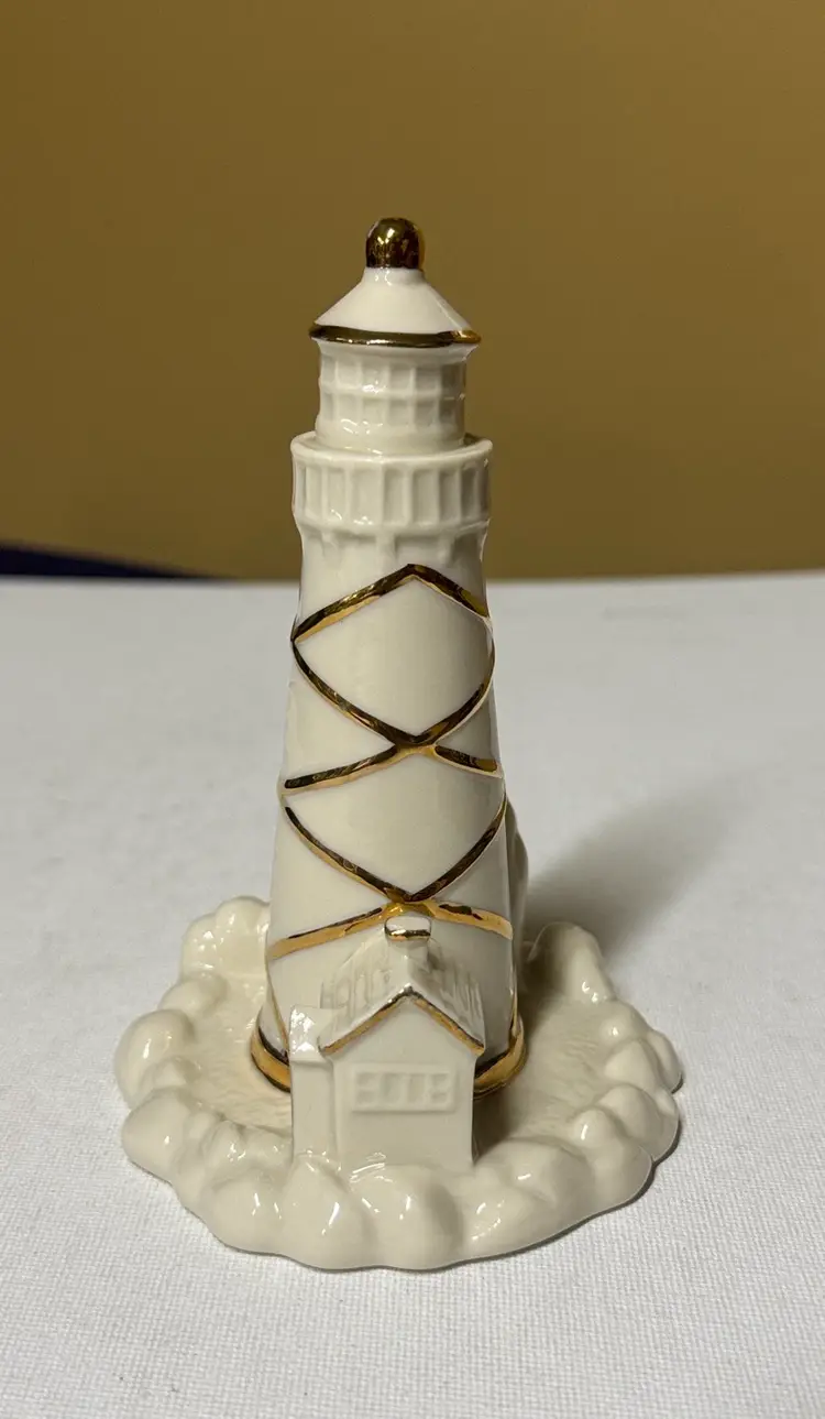 Charming LENOX Porcelain LIGHTHOUSE Figurine Rocks Wave Keeper's Quarters/House Gold Trim 5” tall Excellent like new condition with no breaks or chips (1034927251)