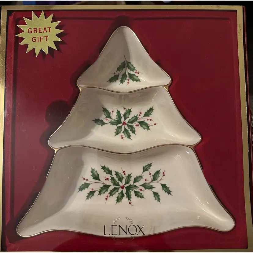 This beautiful Lenox candy dish is a must-have for your holiday collection. The gold trim adds a touch of elegance to the porcelain material. With three compartments, it is perfect for serving candy, nuts, or other small treats. The dish is part of the Dimension Collection and features a festive Christmas pattern. It is ideal for serving guests or as a gift to a loved one. Add this Lenox candy dish to your pottery and glass collection today.
