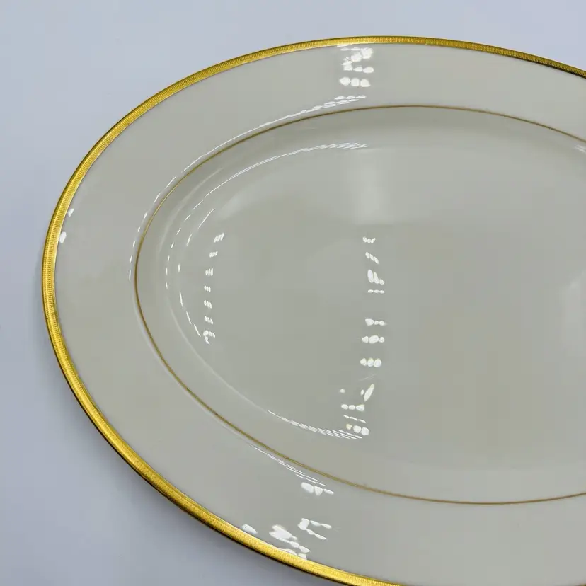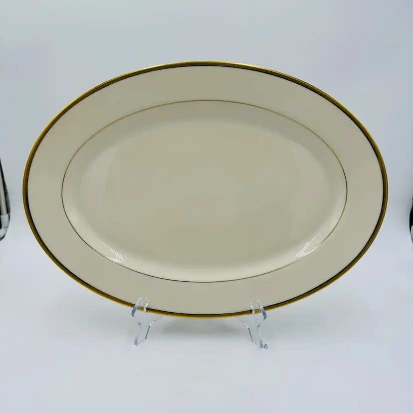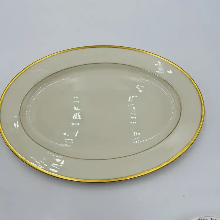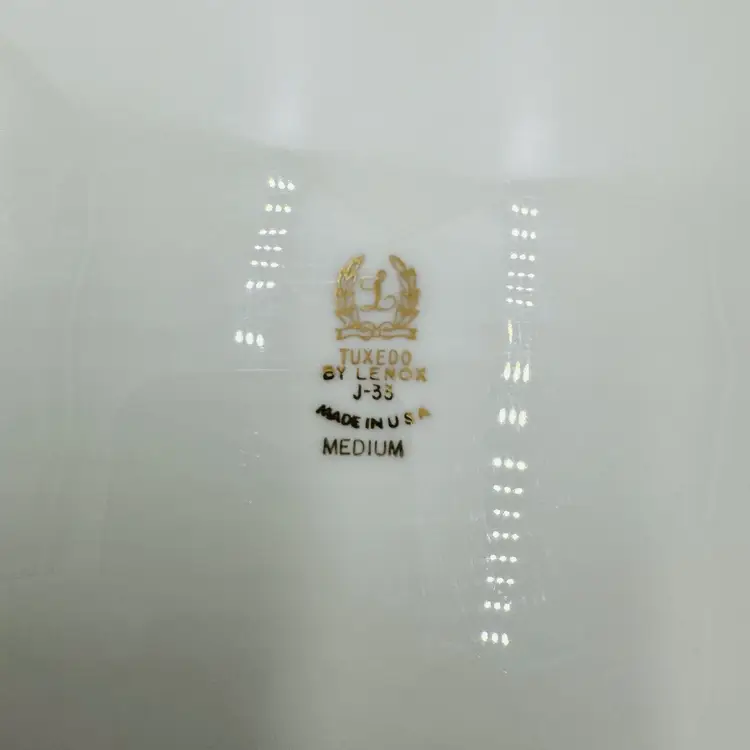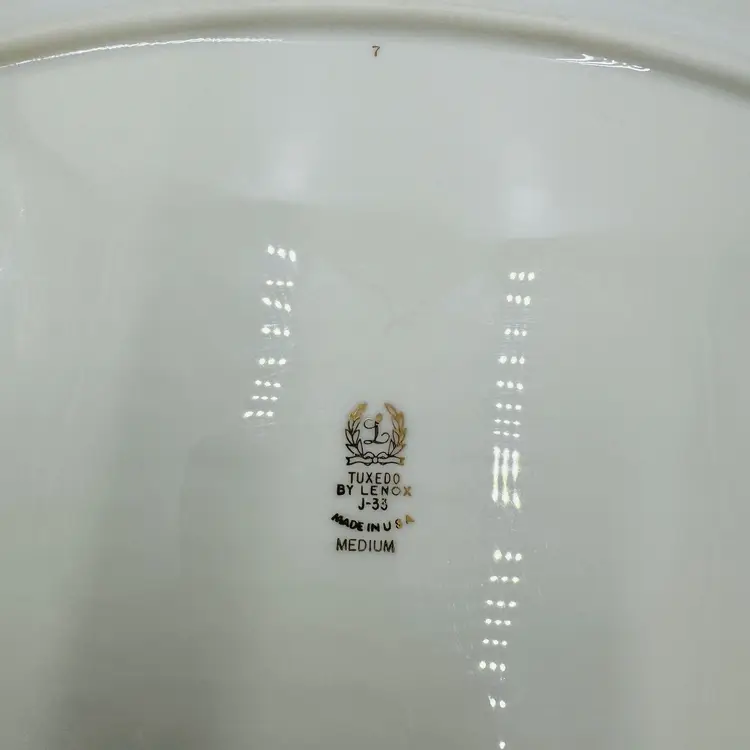 Features: Hand Painted Pattern: Tuxedo Item Length: 16 in Number of Items in Set: 1 Vintage: Yes Country/Region of Manufacture: United States Origin: América Material: Bone China Number of Compartments: 1 Model: Lenox Tuxedo J-33 Product Line: Tuxedo Shape: Oval Finish: Glossy Production Style: Art Pottery Brand: Lenox Style: Contemporary Antique: No Color: Beige Original/Licensed Reproduction: Original Backstamp: Printed Theme: American Type: Platter