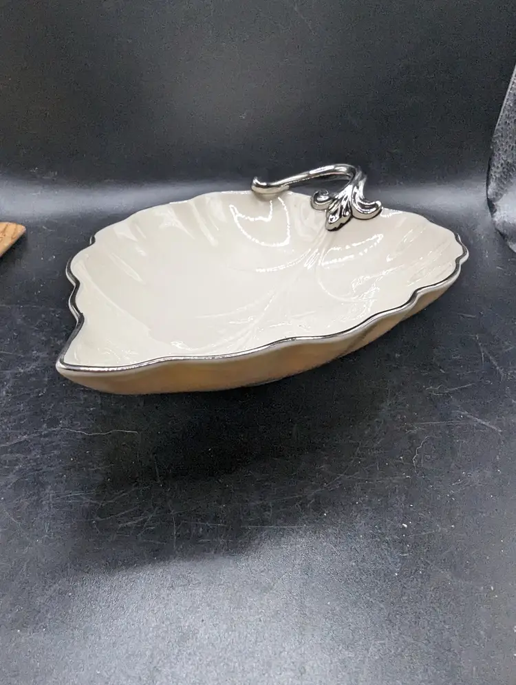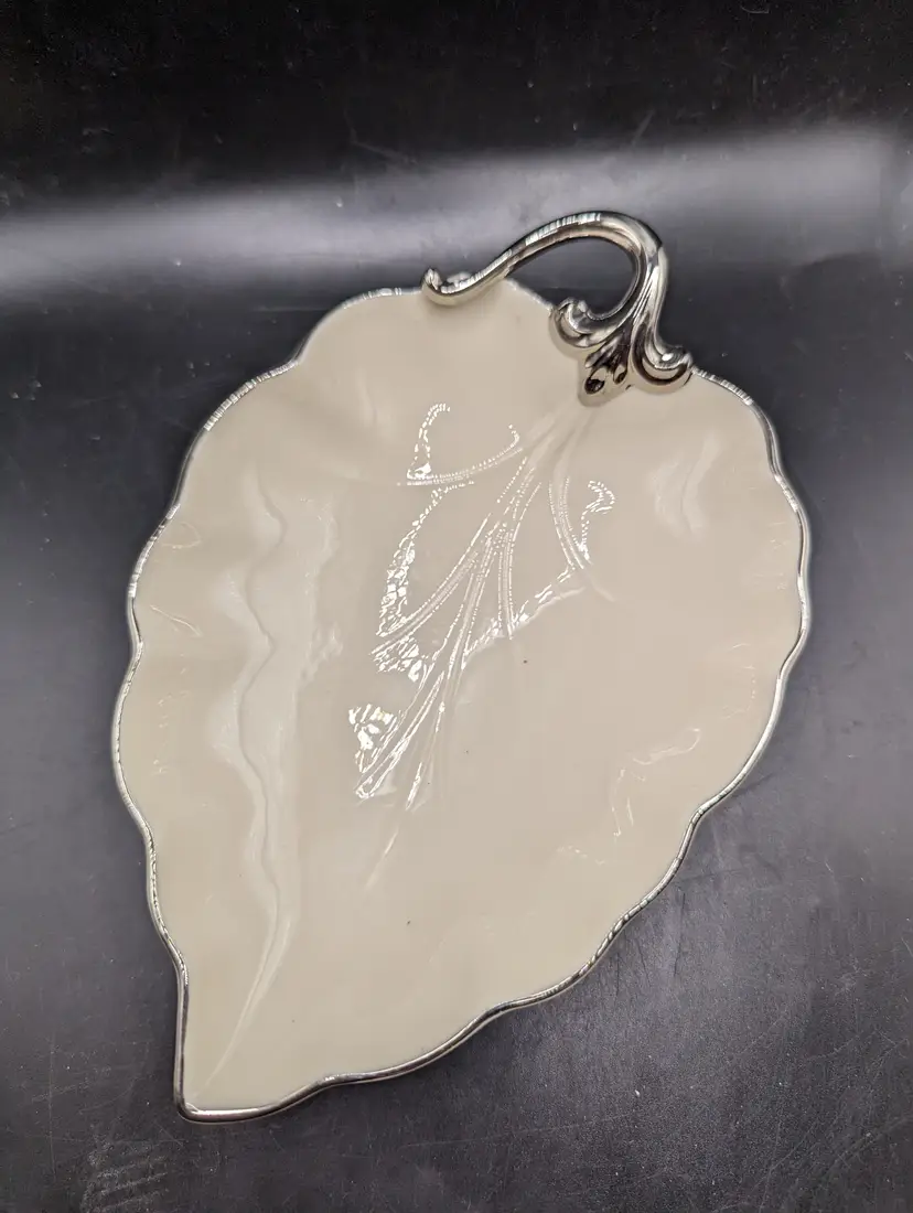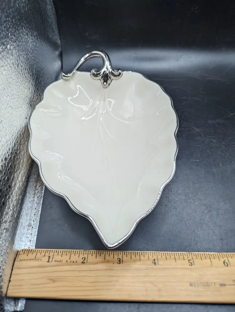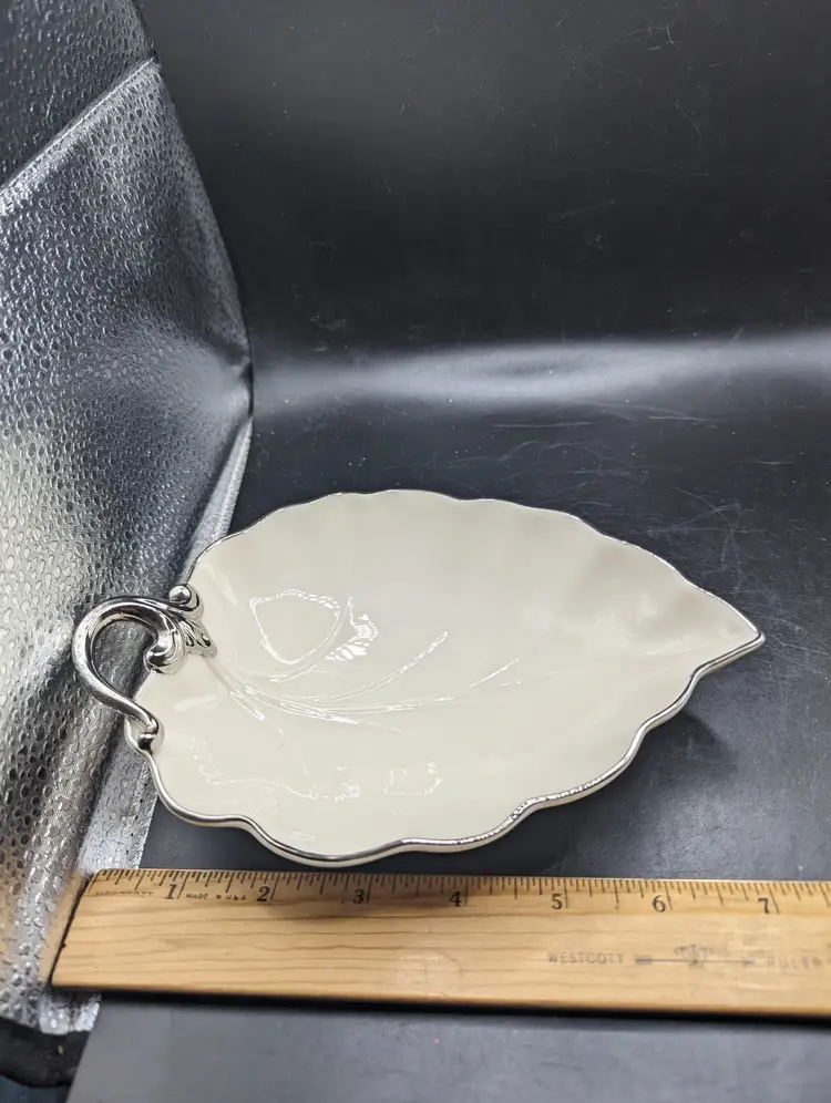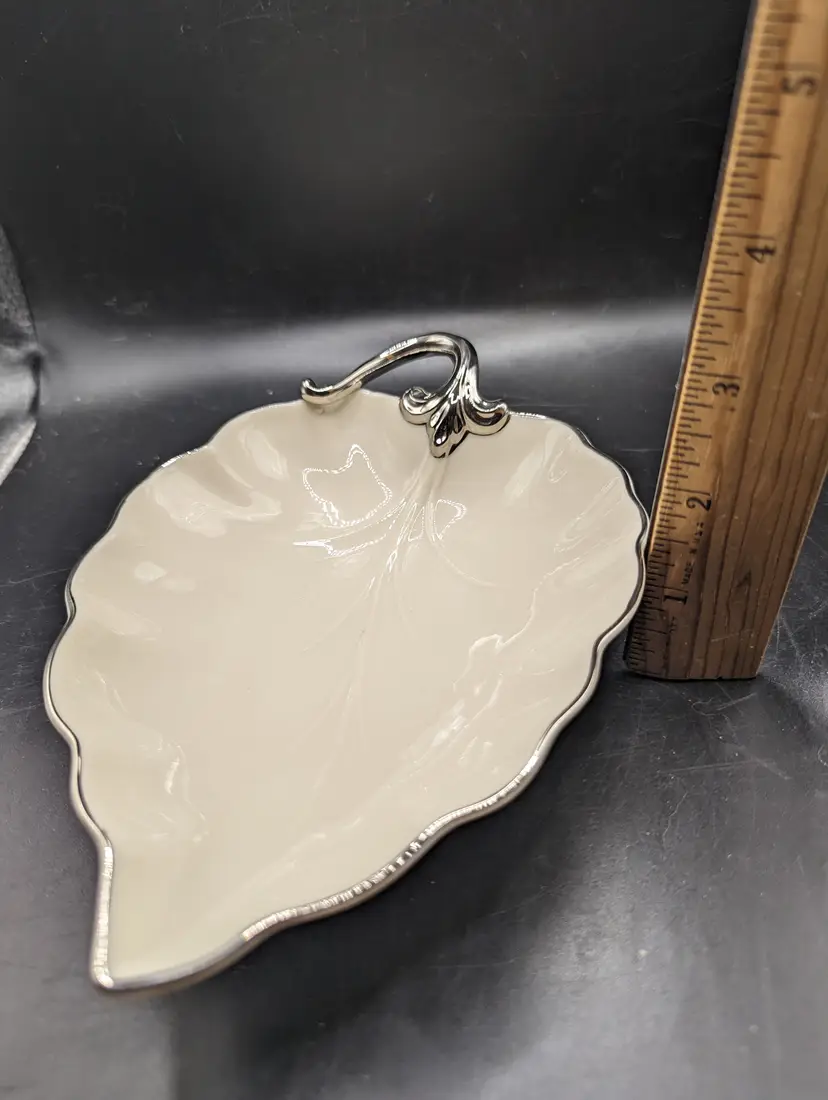 This is a lovely Lenox Woodleaf Platinum Collection Leaf Shaped Dish USA 7.5" Vintage. No chips or cracks. Please see all pictures for condition and measurements.