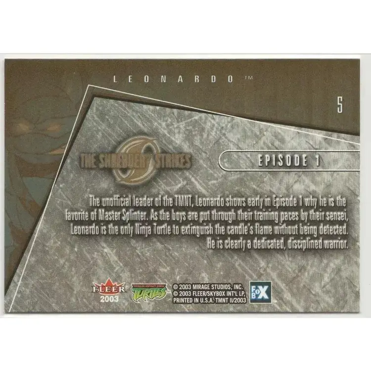 Leonardo #5 Gold Parallel 2003 Fleer Teenage Mutant Ninja Turtles Series 2 - The Shredder Strikes TMNT trading card
