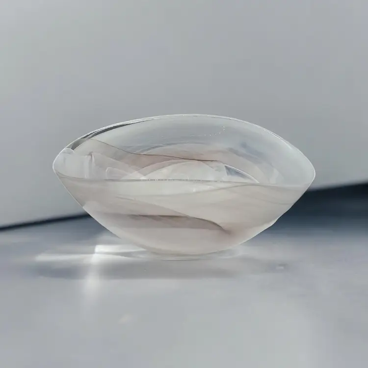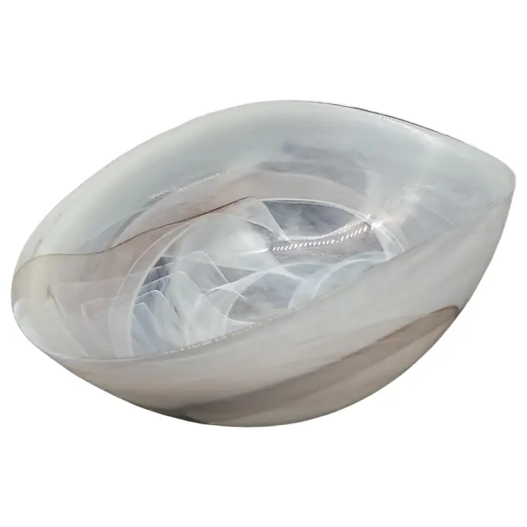 Add a touch of elegance to your table setting with this beautiful Leonardo Alabastro oval hand crafted art glass bowl. Made in Germany by a well respected glass company, this piece features gray and white abstract swirls that add a unique decorative touch to any occasion. Measuring 8 3/4" in length, and 3 3/4" in depth, this bowl also is perfect for serving your favorite