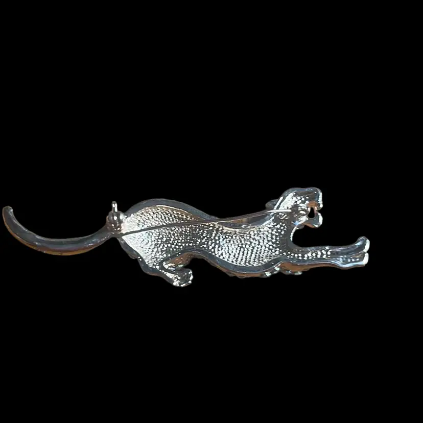 Leaping leopard broach in clear and black crystals