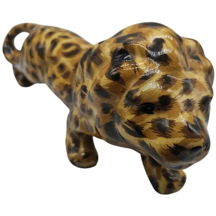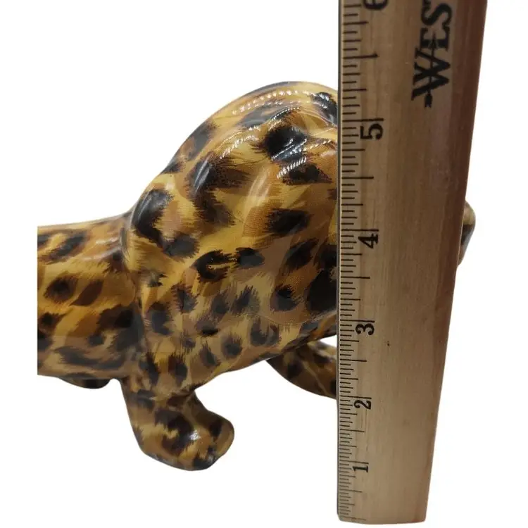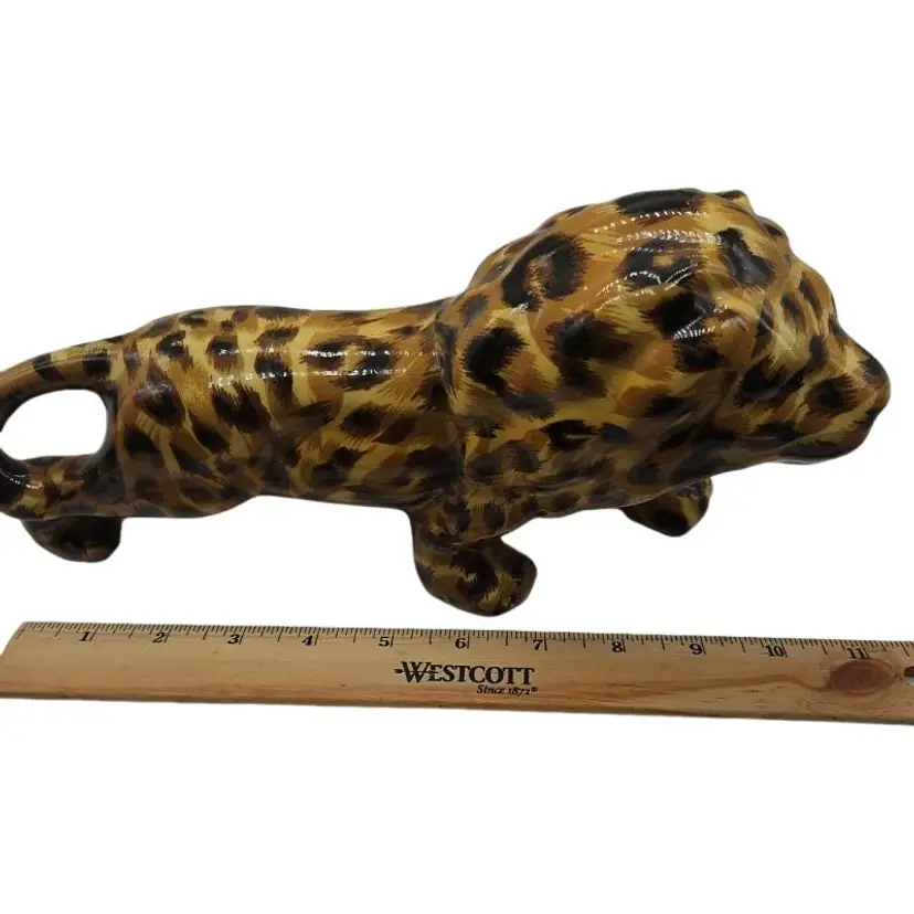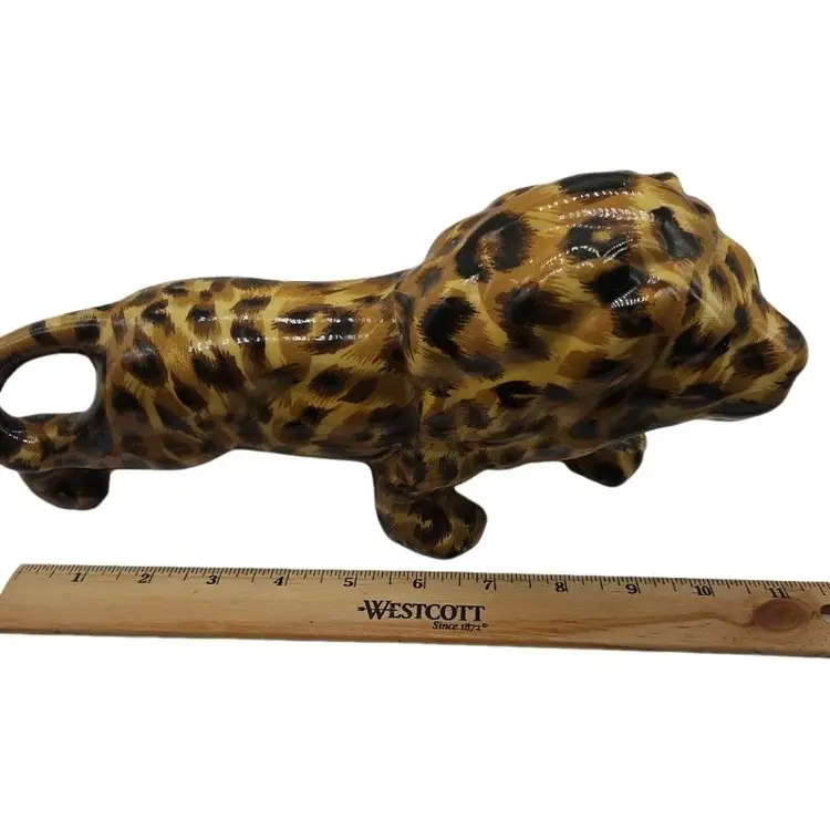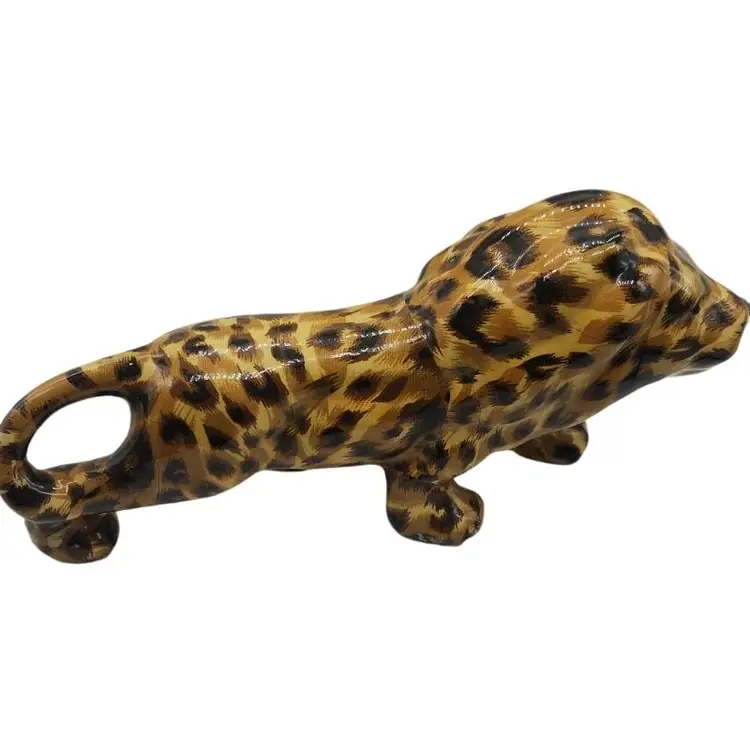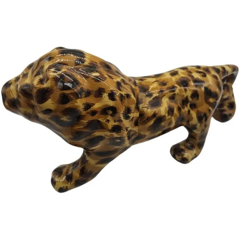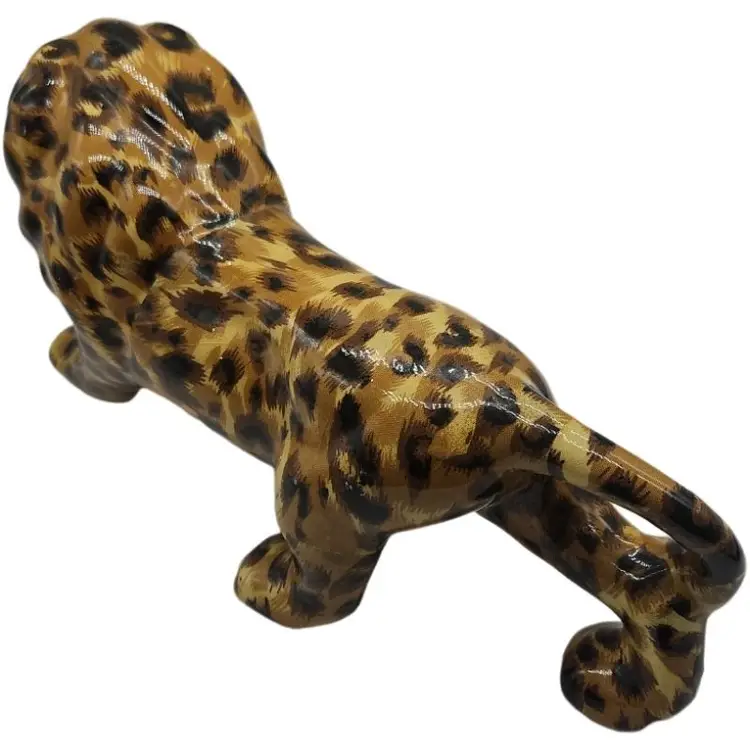 Add a wild touch to your decor with this charming leopard print ceramic lion figurine. Perfect for animal lovers or as a unique accent piece.