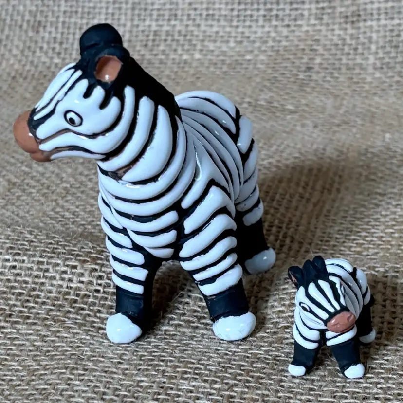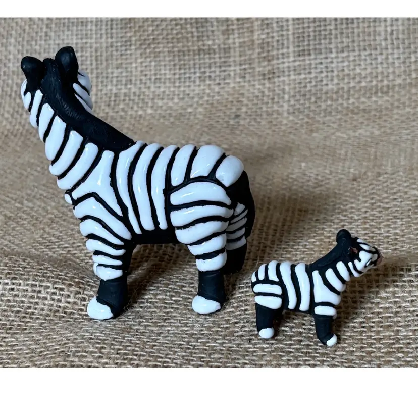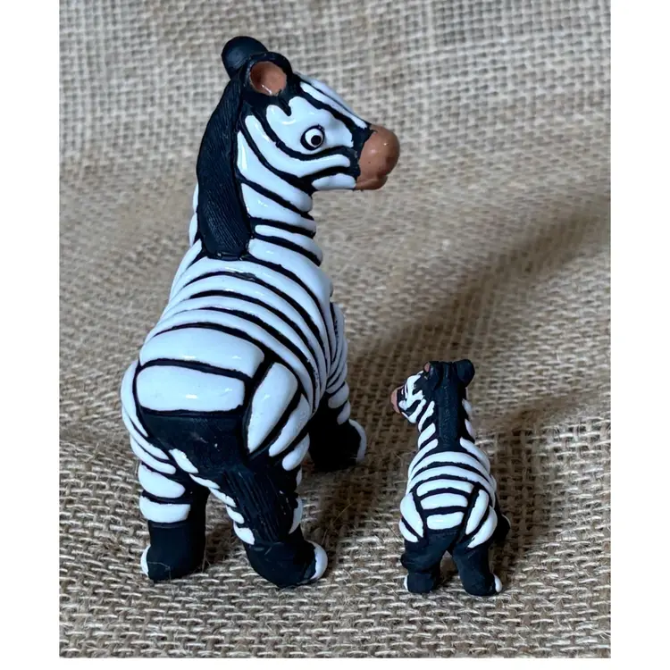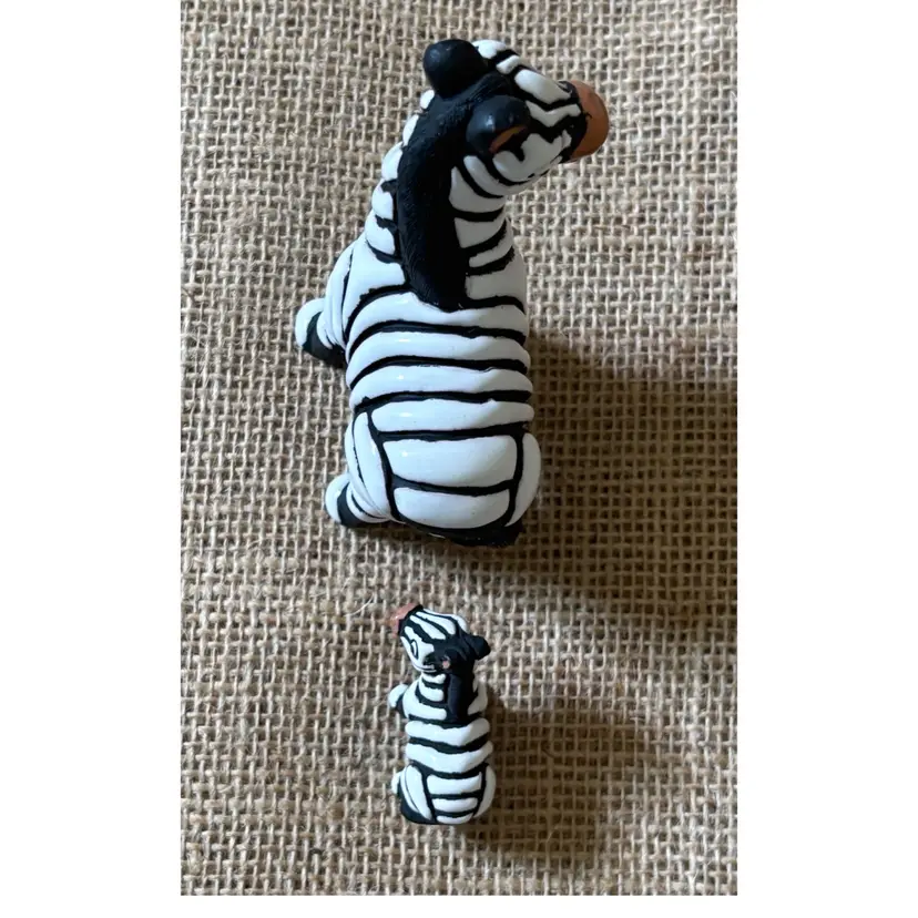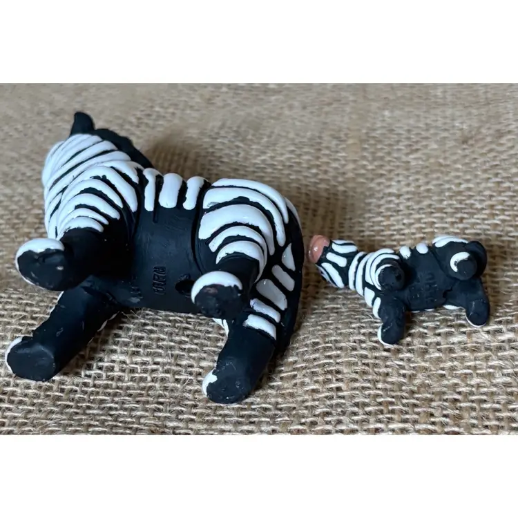 Condition: While both pieces appear to be gently used, some of the paint on the black stripes of the bigger zebra was not completely filled in so you can see the clay underneath.