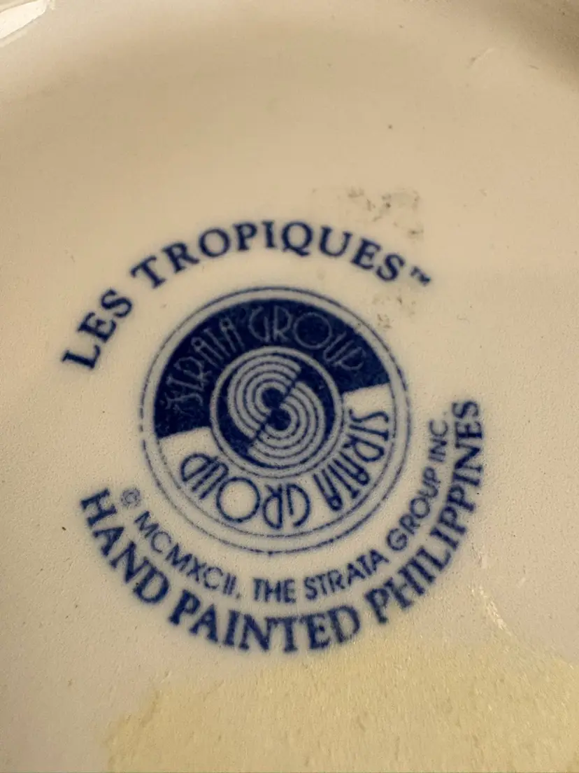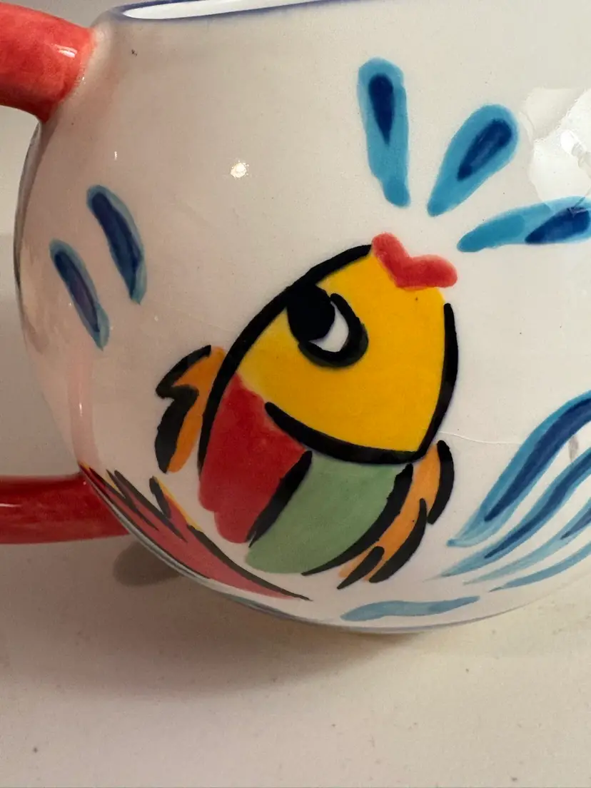 The Les Tropiques Large Hand Painted Pitcher is a colorful ceramic pitcher adorned with intricate hand-painted designs. This decorative piece adds a touch of artistic flair to any table setting or kitchen decor. The multicolor palette and unique hand-painted details make this pitcher a standout piece for serving drinks or displaying as a decorative accent. The Les Tropiques brand ensures quality craftsmanship and a distinctive design that will surely impress any collector or admirer of handmade pottery.