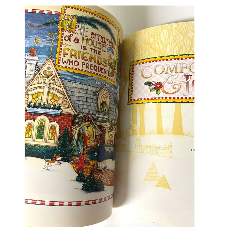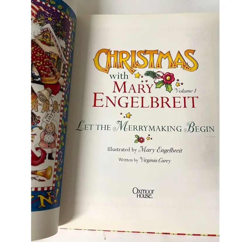 'Let The Merrymaking Begin. Christmas with Mary Engelbreit' Vol 1 Festive Holidays Decor Illustration Hardcover Book 2001. Missing dust jacket. 11.2x8.8 in.