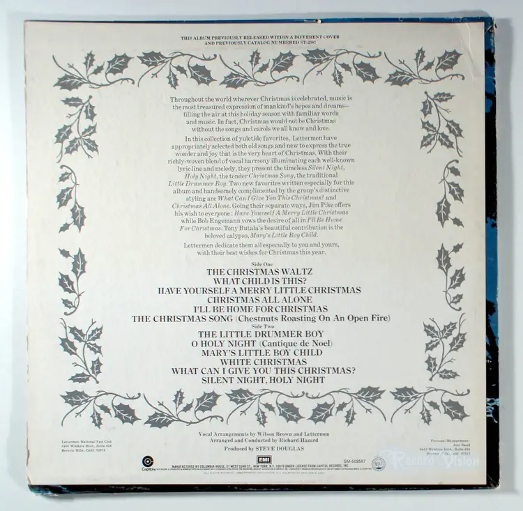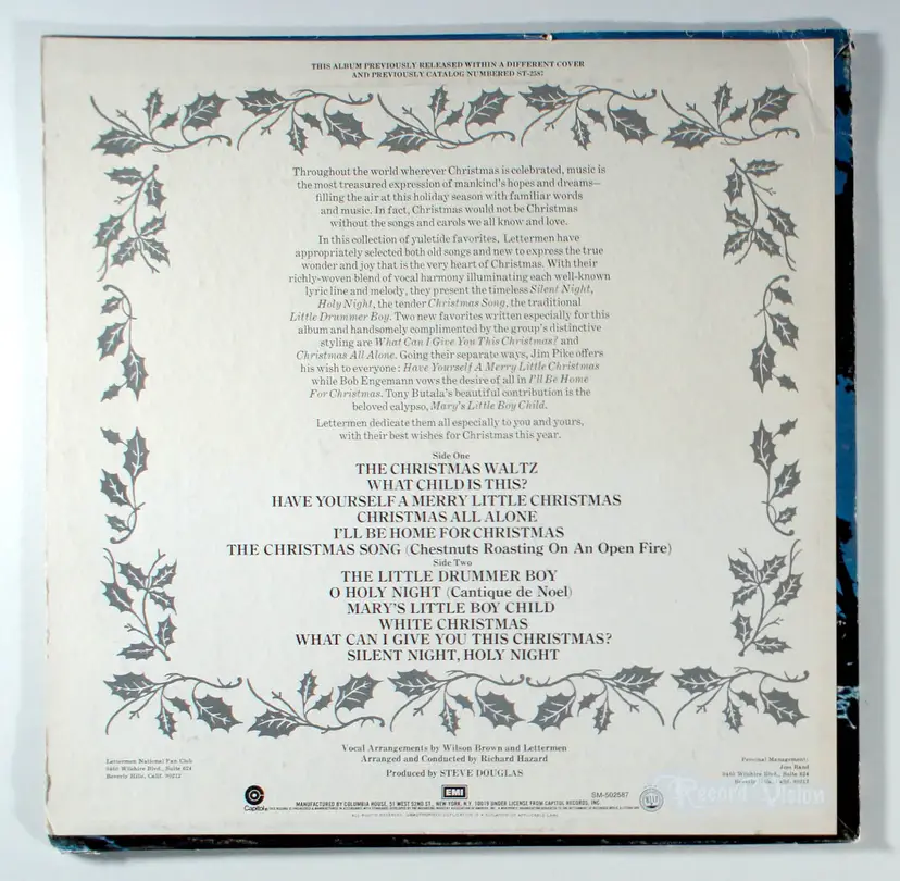 For Christmas This Year is a collection of holiday songs by The Lettermen. In this collection of yuletide favorites, The Lettermen have appropriately selected both old songs and new to express the true wonder and joy that is the very heart of Christmas. With their richly-woven blend of vocal harmony illuminating each well-known lyric line and melody, they present the timeless Silent Night, Holy Night, the tender Christmas Song, the traditional Little Drummer Boy. Two new favorites written especially for this album and handsomely complimented by the group's handsomely complimented by the group's distinctive styling are What Can I Give You This Christmas? and Christmas All Alone. A reviewer on allmusic.com says of the album, "Here is the early Lettermen sound of 1966. Put a log on the fire, sit back, and enjoy."