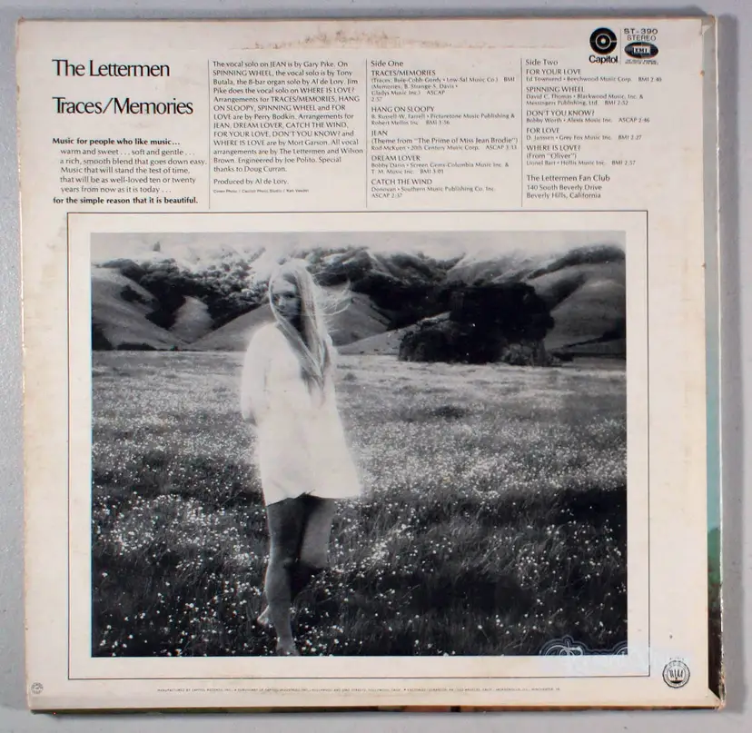 The Lettermen are an American male pop vocal trio. The Lettermen's trademark is close-harmony pop songs with light arrangements. Traces/Memories placed No. 42 on US Charts.