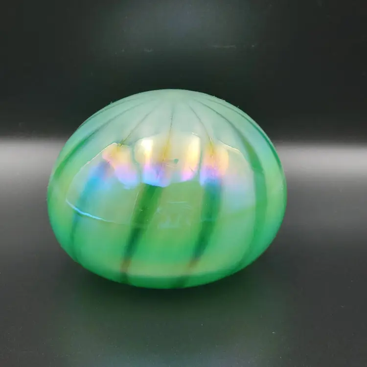 Gorgeous green glass paperweight is not marked or signed but came from an avid Levey collector's estate sale. To my surprise it has brilliant green UV glow. It is in great condition with no chips, cracks or surface scratches. Measures 3.75 inches in diameter and is 3 inches tall. I take great care in securely packaging to ensure a save delivery. Thank you for looking and have a great day!