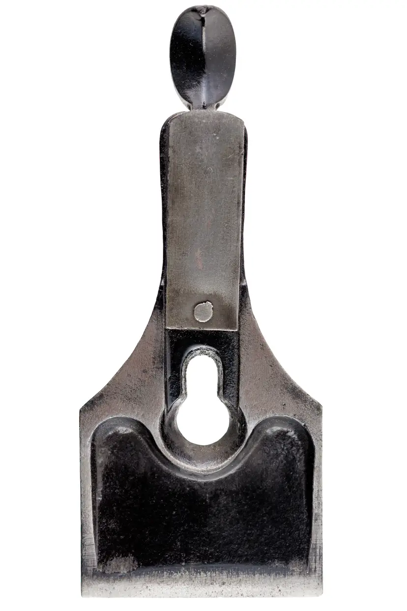 A Good Plus original cap iron and screw for Stanley's No. 32, 33, 34, 37 transitional planes. Salvaged from an earlier type 9 plane. 6-1/8" long and 2-5/8" wide. Minimal wear with no damage