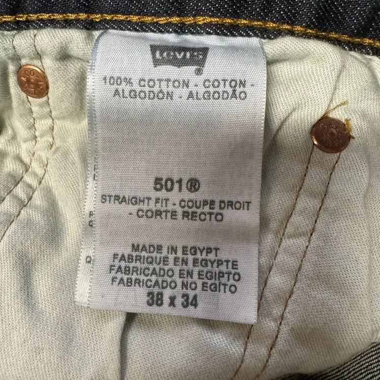 Levis 501 Jeans Mens 38 x 34 Blue Dark Wash Straight Leg Button Fly Denim