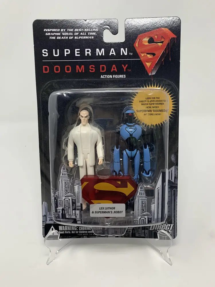 BRAND NEW Lex Luthor & Superman’s Robot Action figure from the Superman Doomsday animated Movie. This figure was made by Mattel and released in 2007.