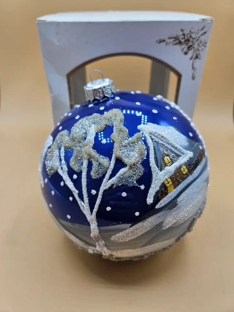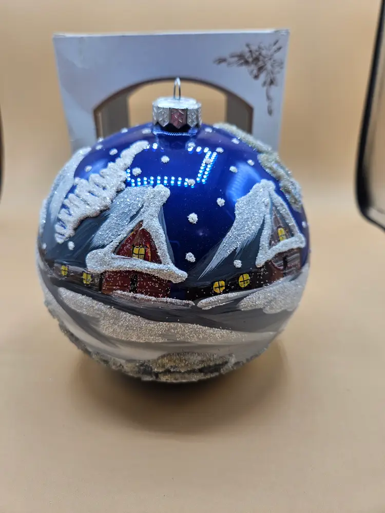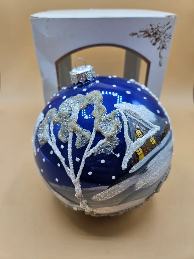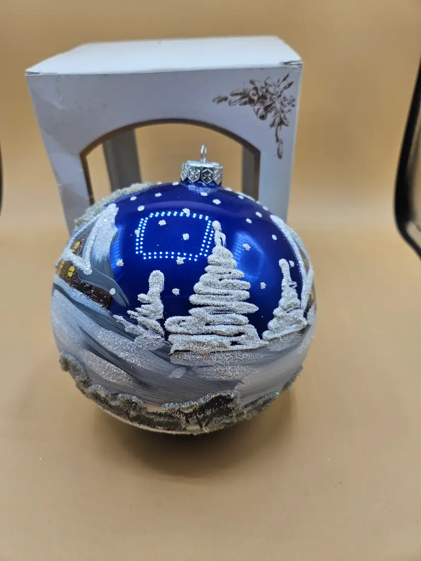No chips cracks or repairs. A little yellowing on one of the trees. New in box.