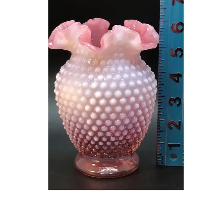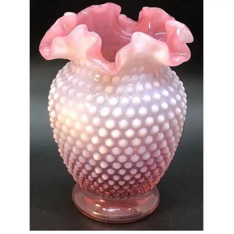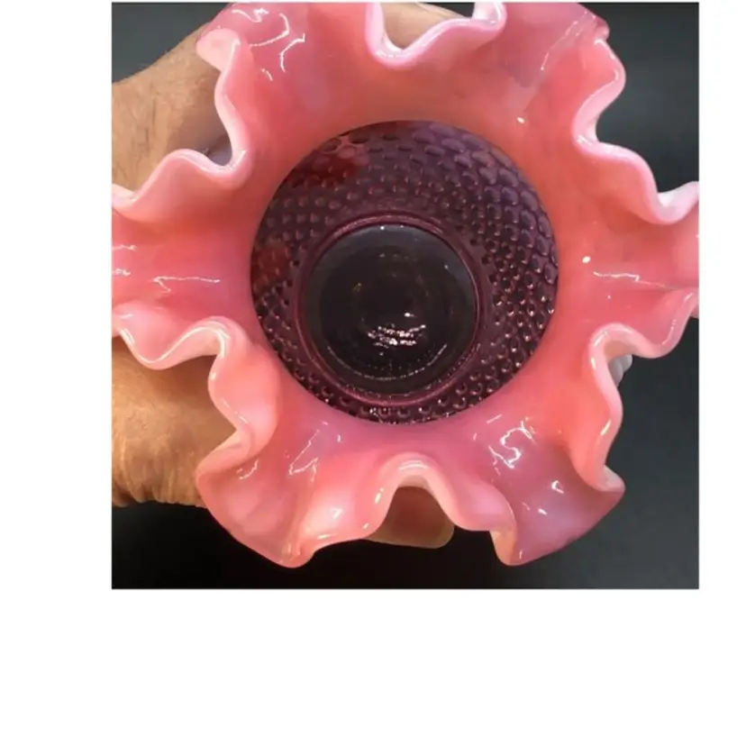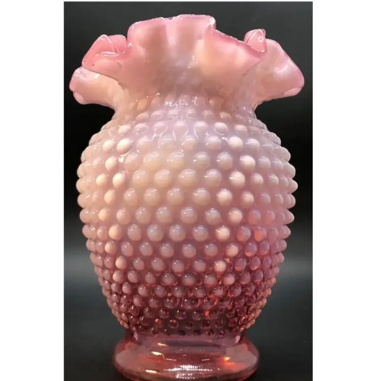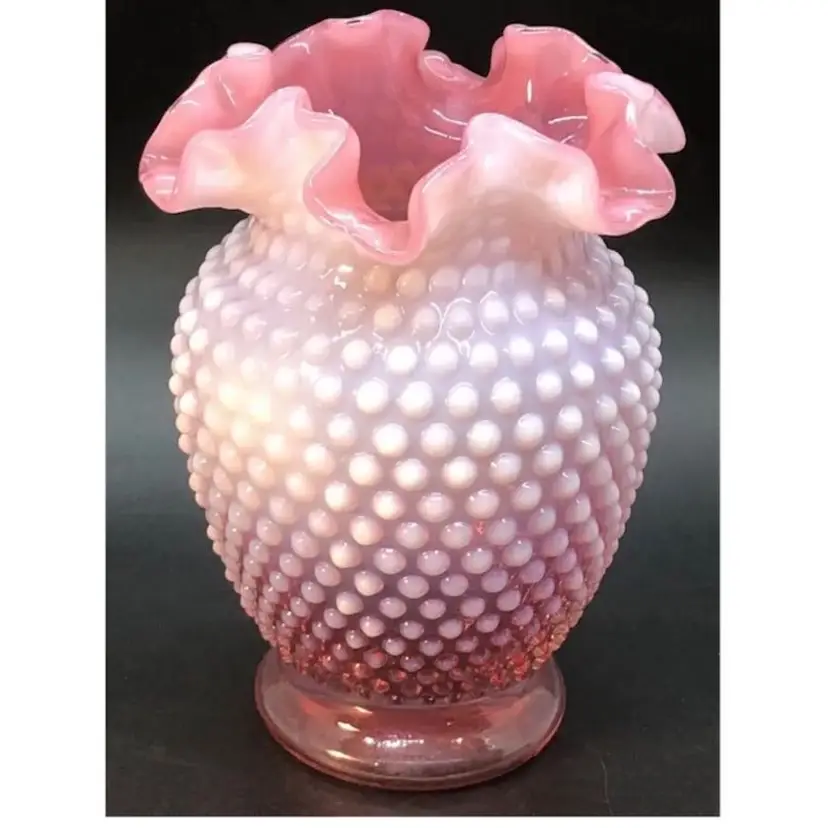 This beautiful vintage Fenton vase is made of high quality glass and weighing in at 1 lbs. 4 oz. its fused glass production technique in art glass, production style, make it a rare find. There are no cracks or chips. Please text me any questions. Thank you.