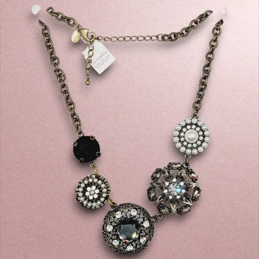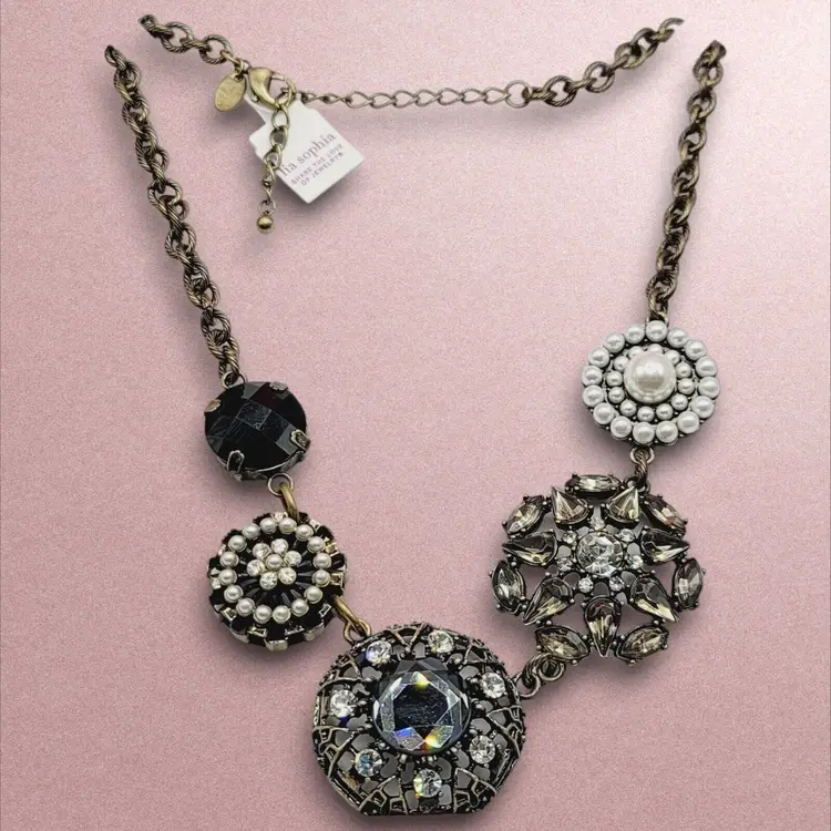– Antique: No – Pendant Shape: Round – Closure: Lobster – Occasion: Anniversary, Birthday, Christening, Christmas, Confirmation/Communion, Engagement, Father's Day, Graduation, Mother's Day, Valentine's Day, Wedding – Main Stone Color: White/Colorless – Metal: Unknown – Secondary Stone: Imitation Pearl – Necklace Length: 16 in – Main Stone: Crystal – Vintage: No – Personalize: No – Style: Chain, Pendant – Base Metal: Unknown – Handmade: No – Chain Type: Cable – Seller Warranty: No – Signed: Yes – Color: Multicolor – Sizable: No – Material: Acrylic, Metal – Brand: lia sophia – Type: Necklace – Theme: Bohemian, Fashion & Costumes – Country/Region of Manufacture: Unknown – Wholesale: No