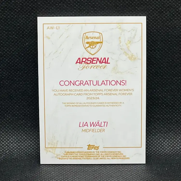 Lia Walti 2024 Arsenal Forever Autograph Soccer Card