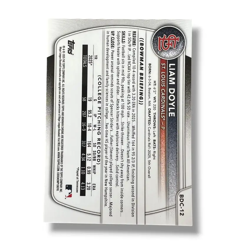 Here We Have a Liam Doyle 1st Bowman Chrome Image Variation Mojo SP 2025 Bowman Draft BDC-12