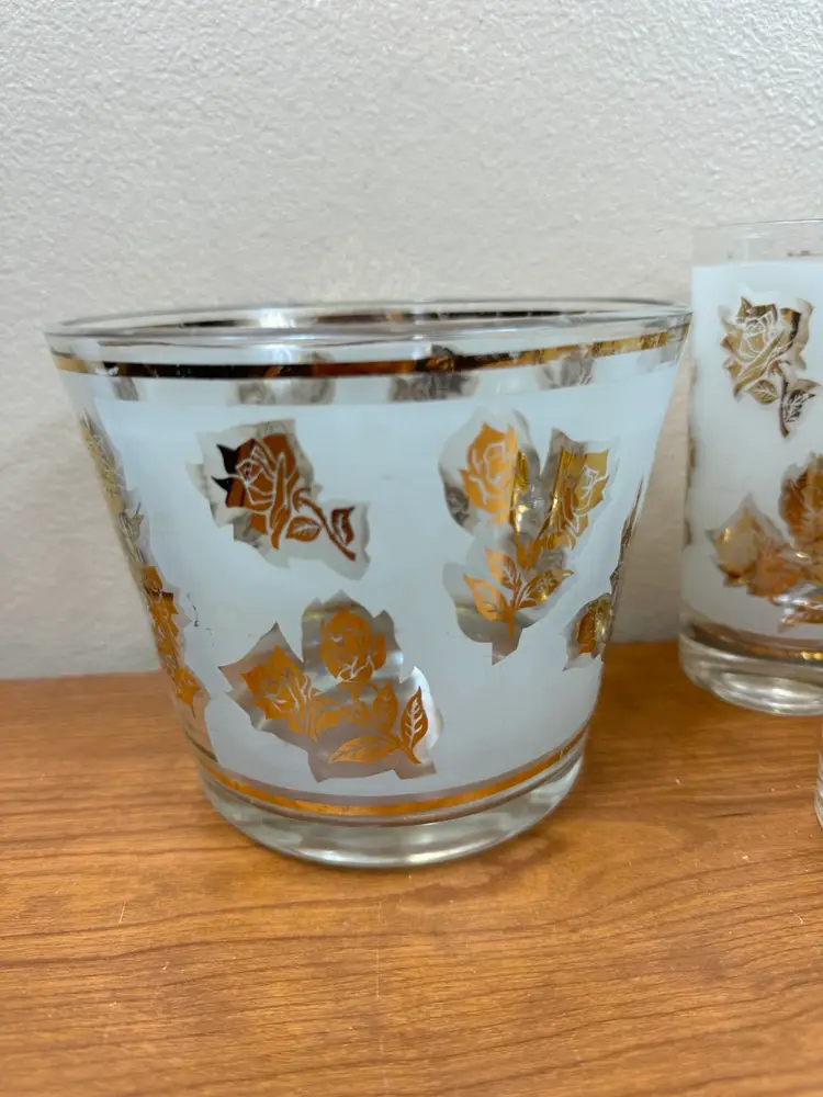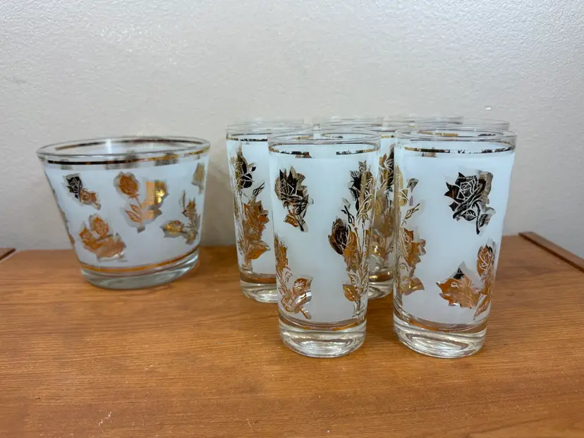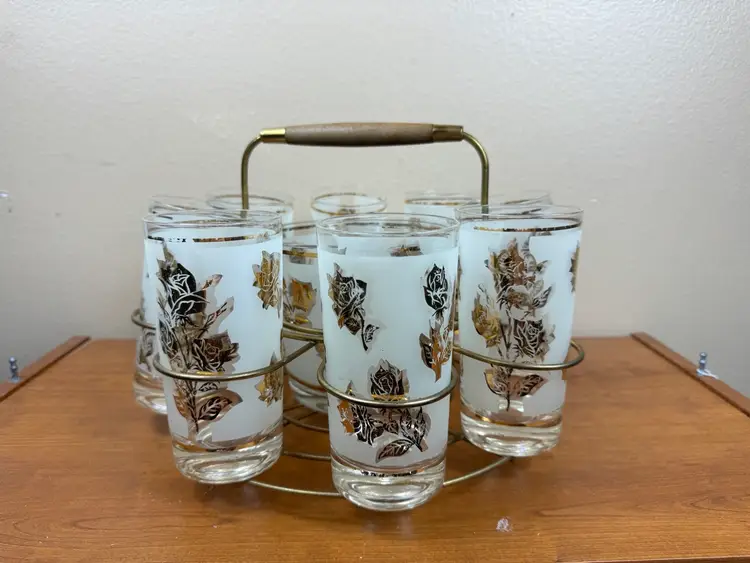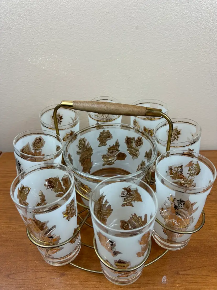 🍁Glasses: 5 5/8" H x 2 3/4" Diameter🍁 🍂Ice Bucket: 4 3/4" H x 5 3/4" Diameter🍂 🍁Carrier: 8 1/2" H x 11 1/2" Diameter🍁