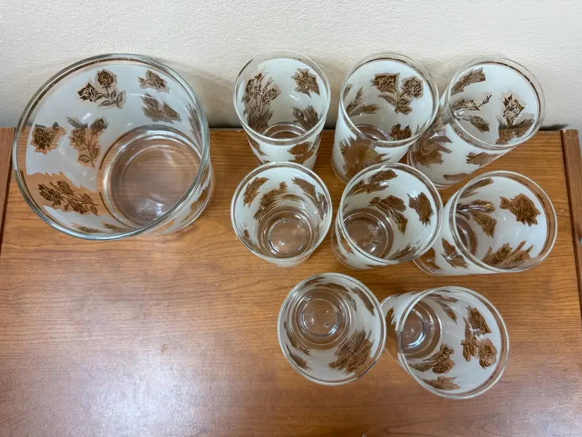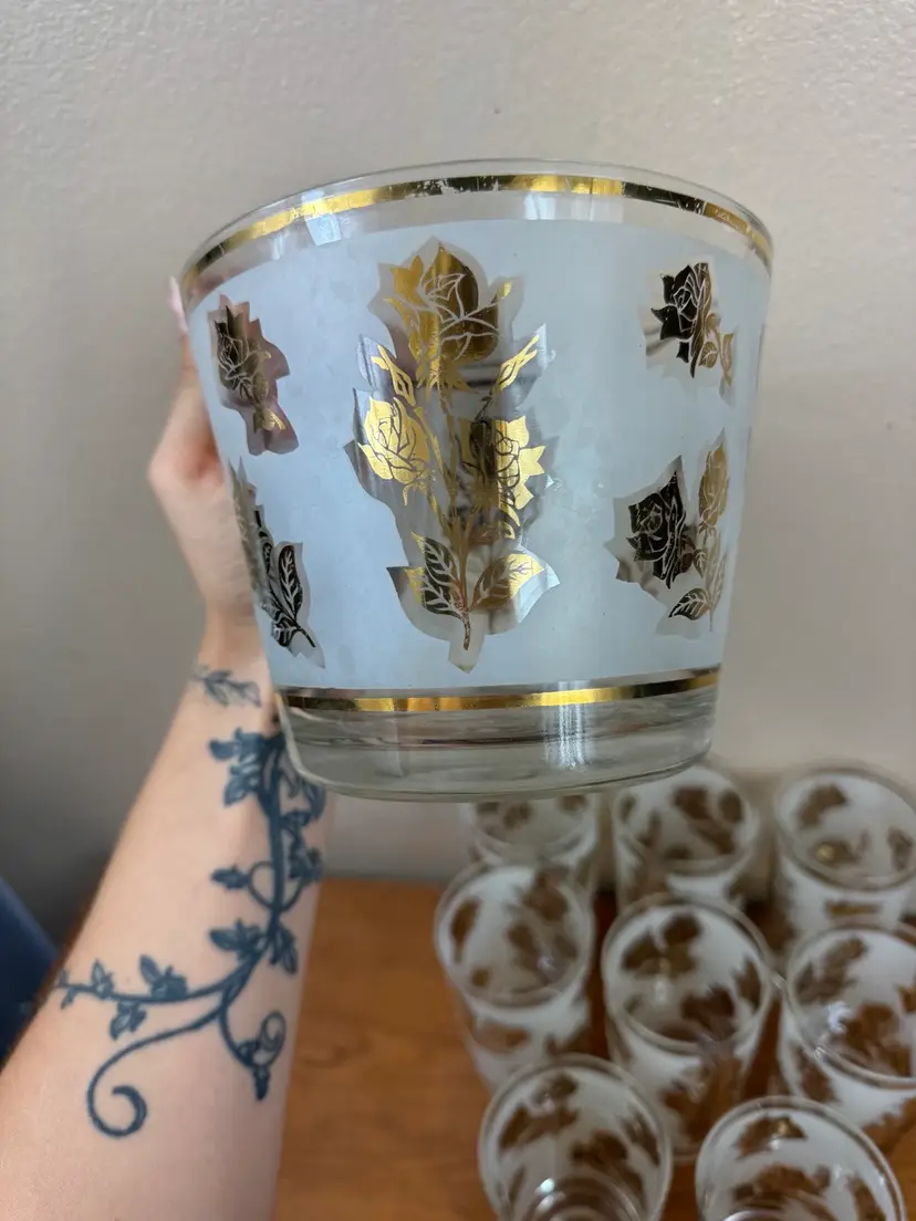 🍂There is some fading on the gold. One of the tumblers has a minor chip on the top. Caddy in GUC🍂