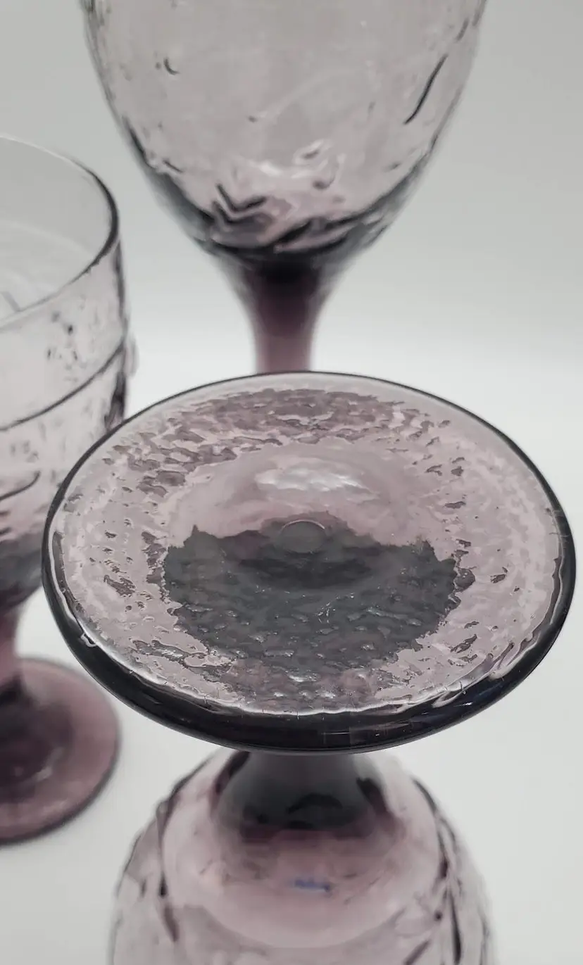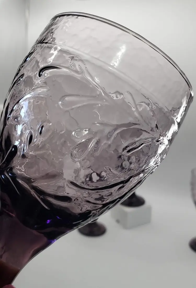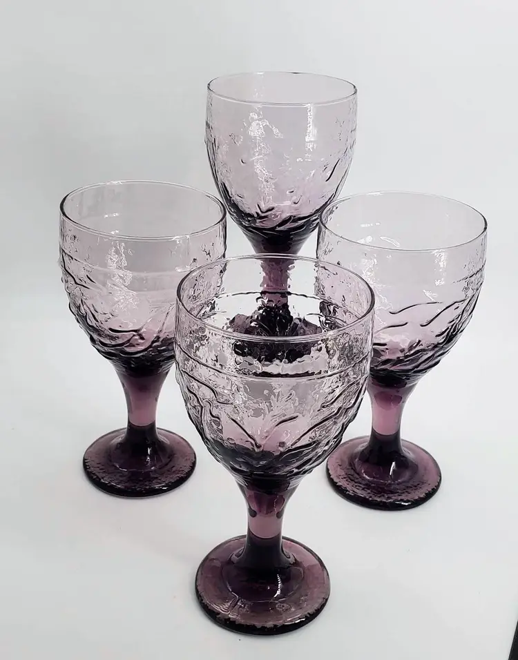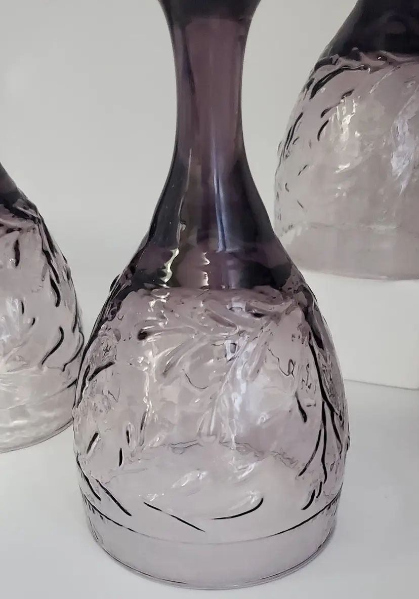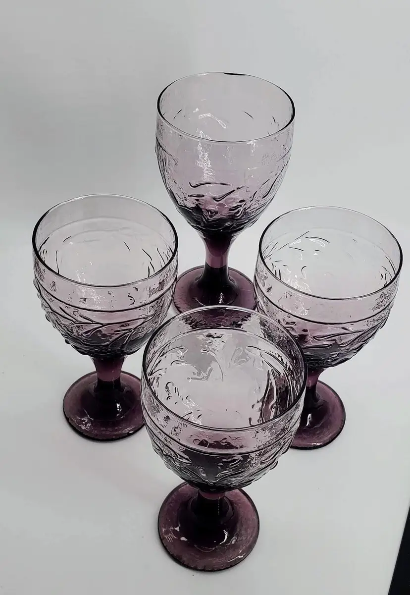 This set of 4 violet Garden Vine wine/water goblets by Libbey will add a pop of elegant color to any table setting.