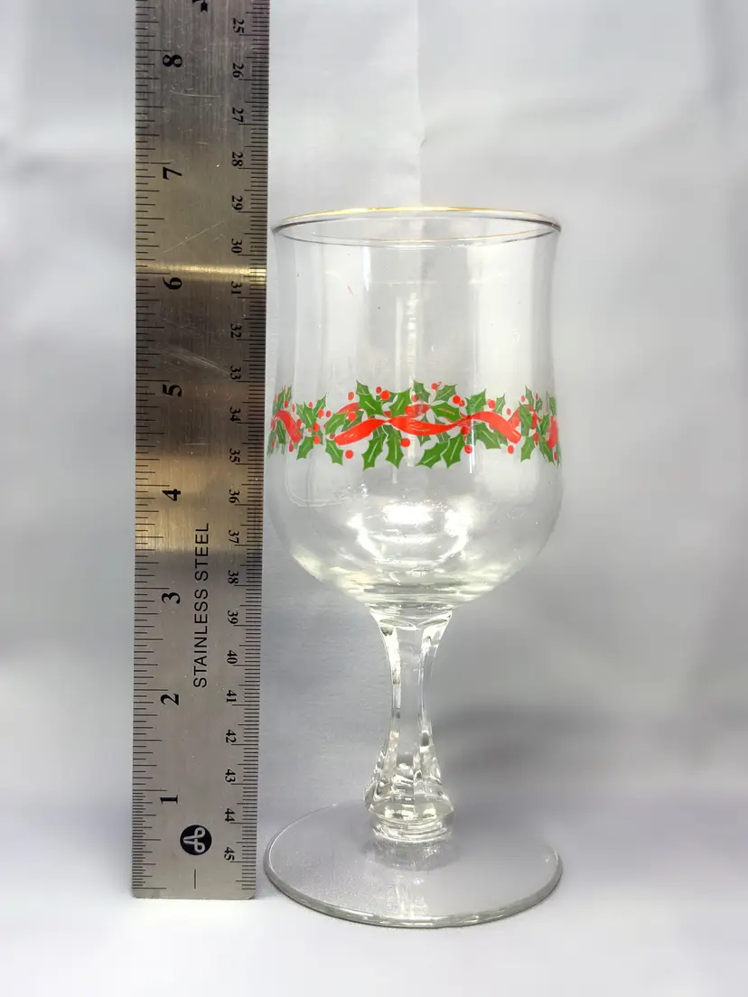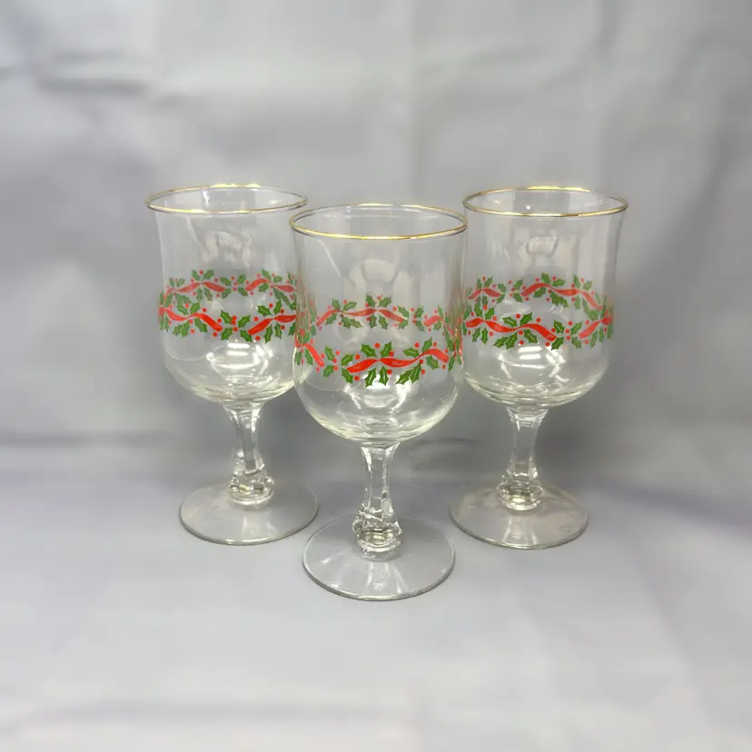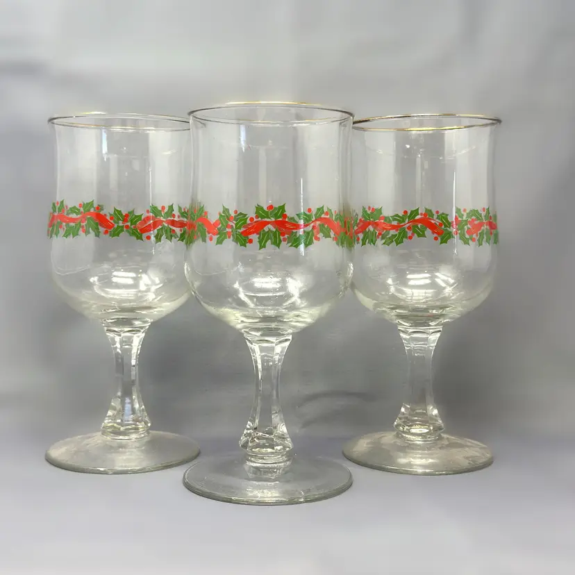 Perfect for Christmas hosts, vintage lovers, or collectors looking to infuse their holiday table with nostalgia. This authentic 1980s Libbey Holly Berry goblet set features pressed glass bodies, bright red holly berries, emerald green leaves, and elegant gold rims—a standout from Libbey’s holiday series.